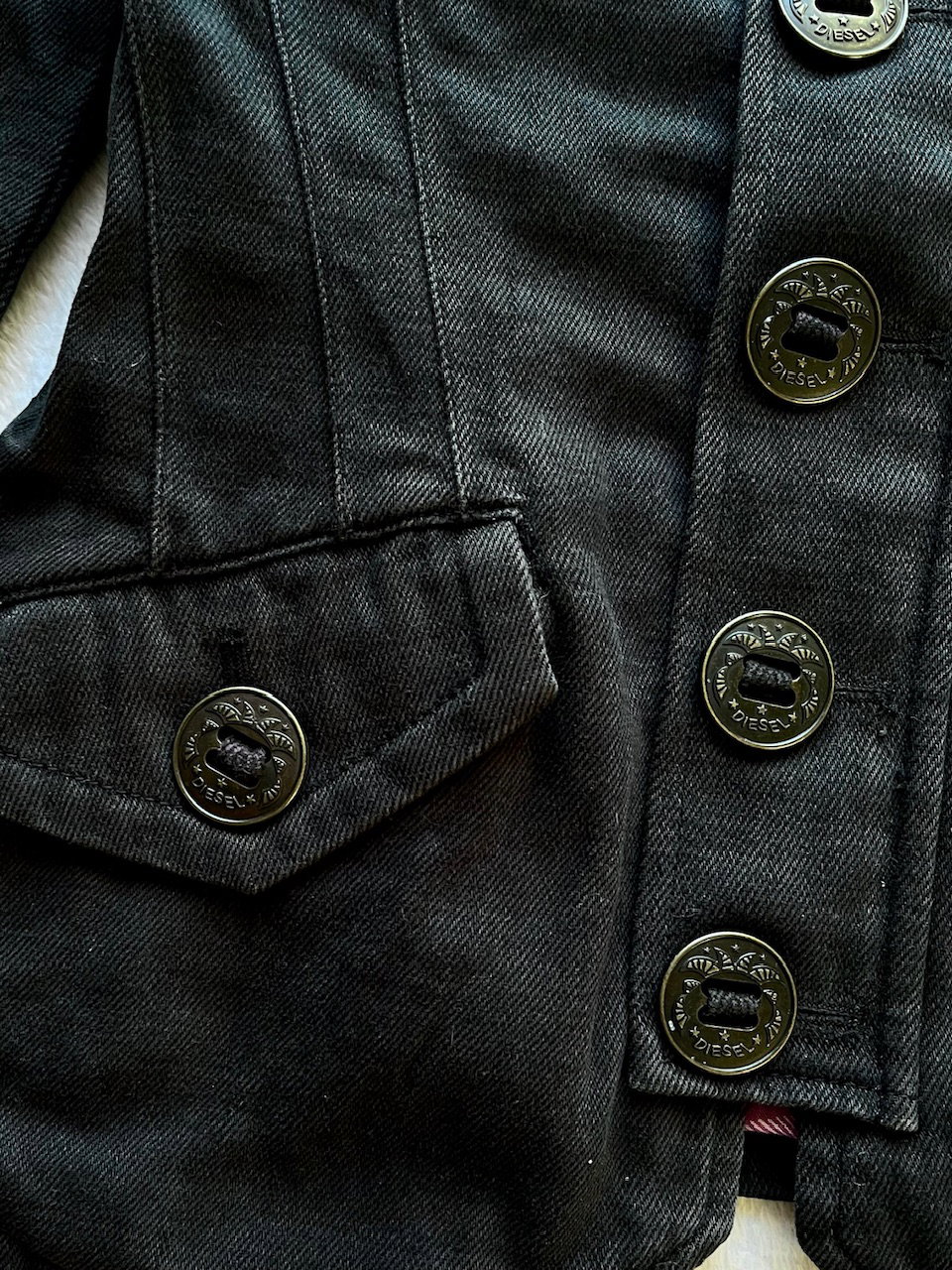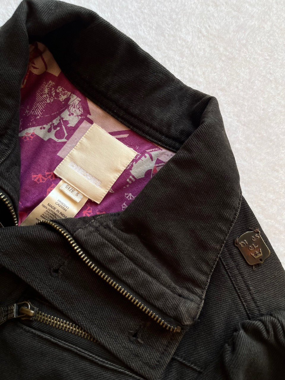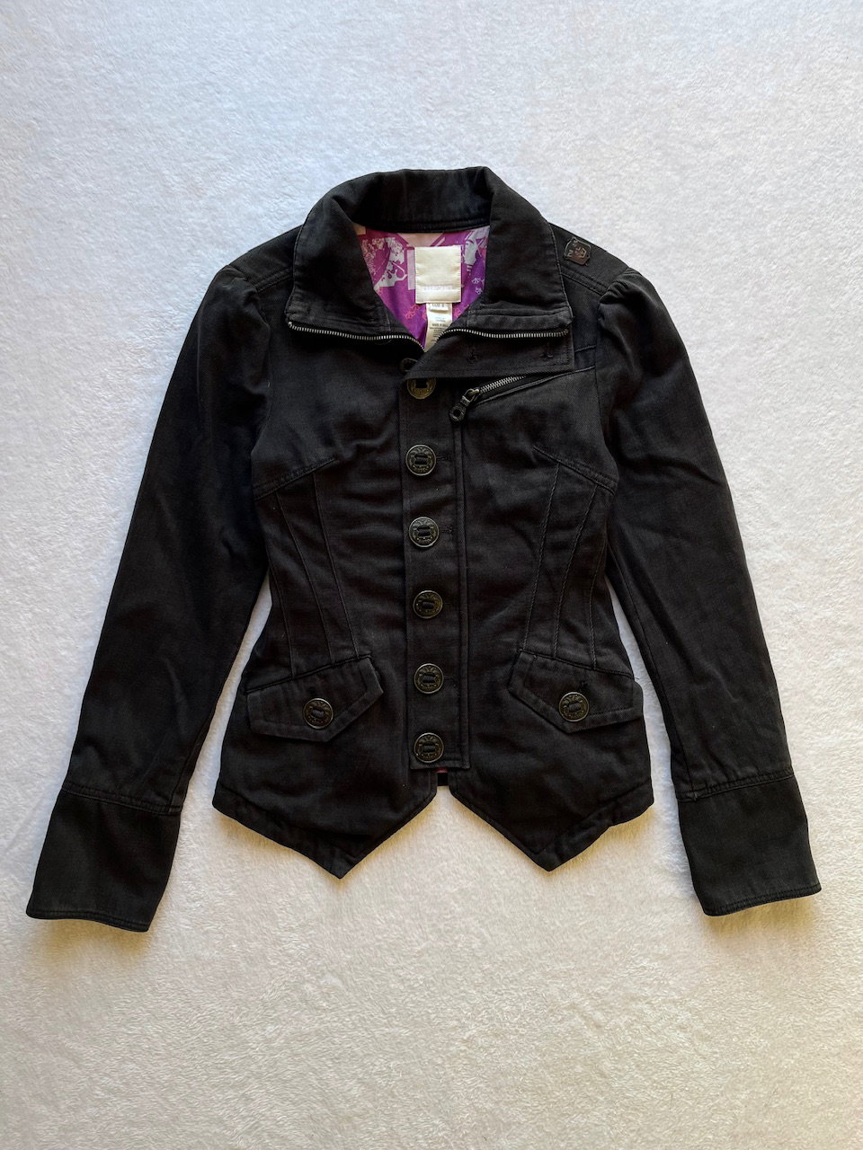 jacket marca diesel original. se trata de una prenda "comprada" fuera, no se comercializo este modelo en argentina. es vintage de inicios de los 00s cuenta con botones y cierre, puede usarse con cuello estilo camisero o cerrado. es entallada, marcando la cintura. las mangas tienen fruncidito estilo princesa y luego van entalladas siendo suepr manga largas. talle s. ver unicos detalles del uso en fotos. 100% algodon