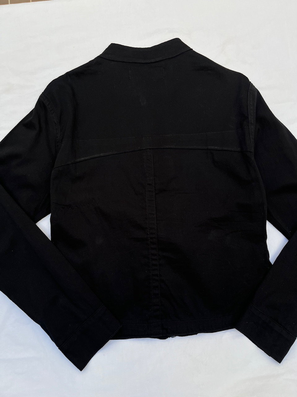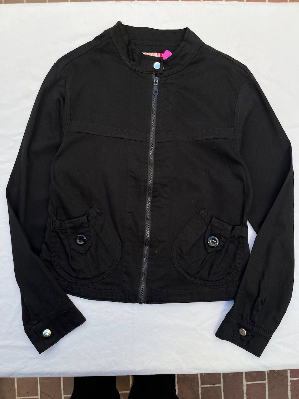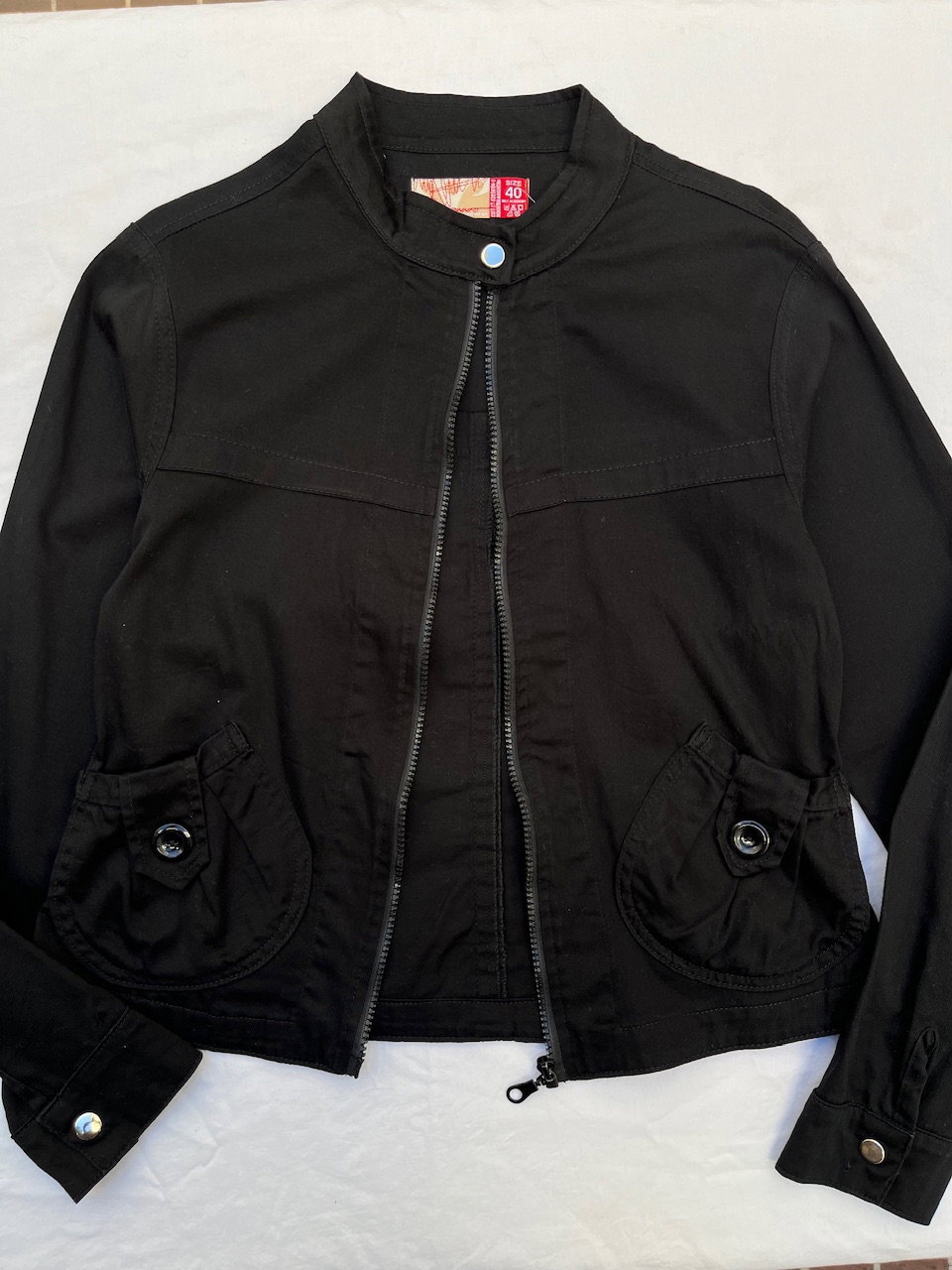 campera estilo motociclista con cuello mao, es de gabardina. ideal para media estación. talle s