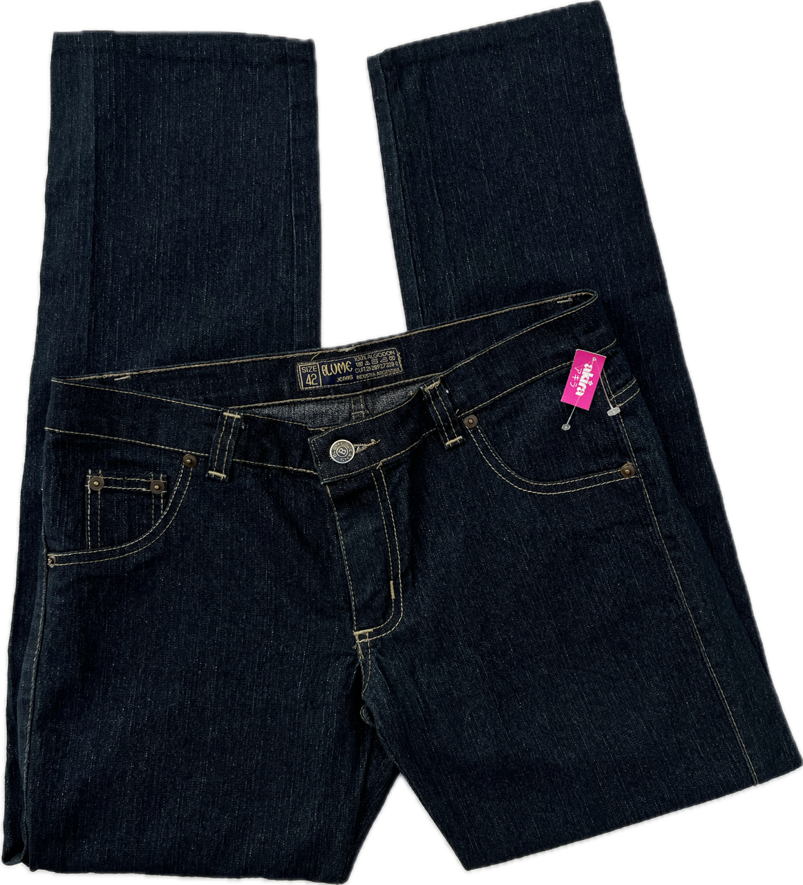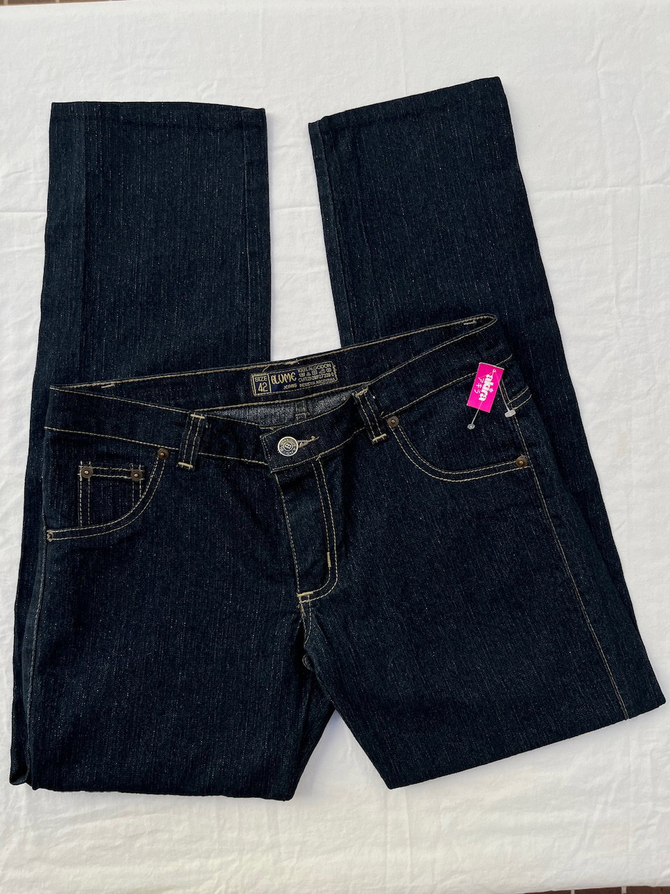 jean azul con brillitos. talle 40/42 es tiro bajo, se encuentra como nuevo