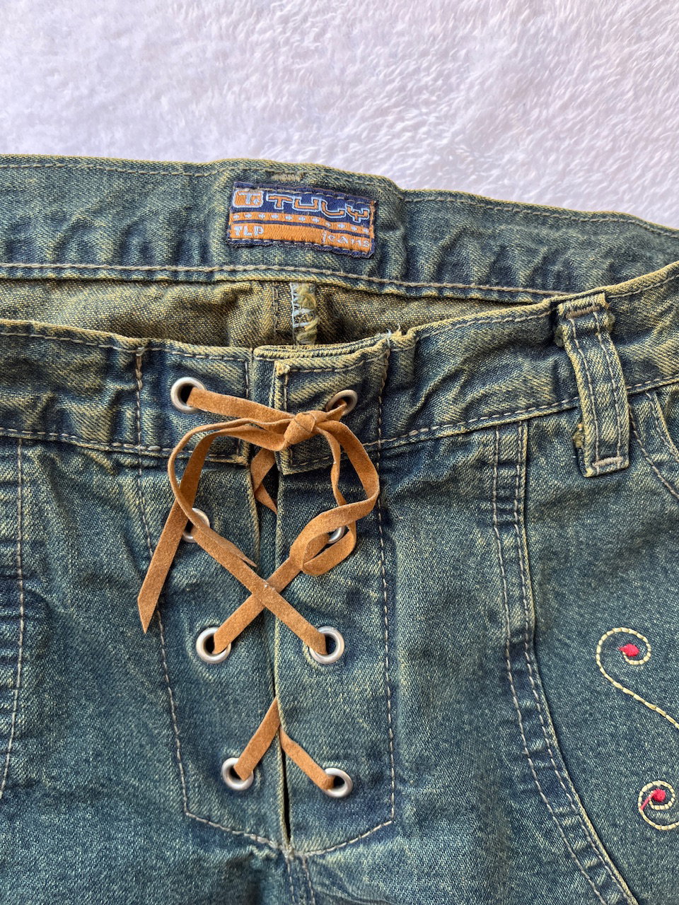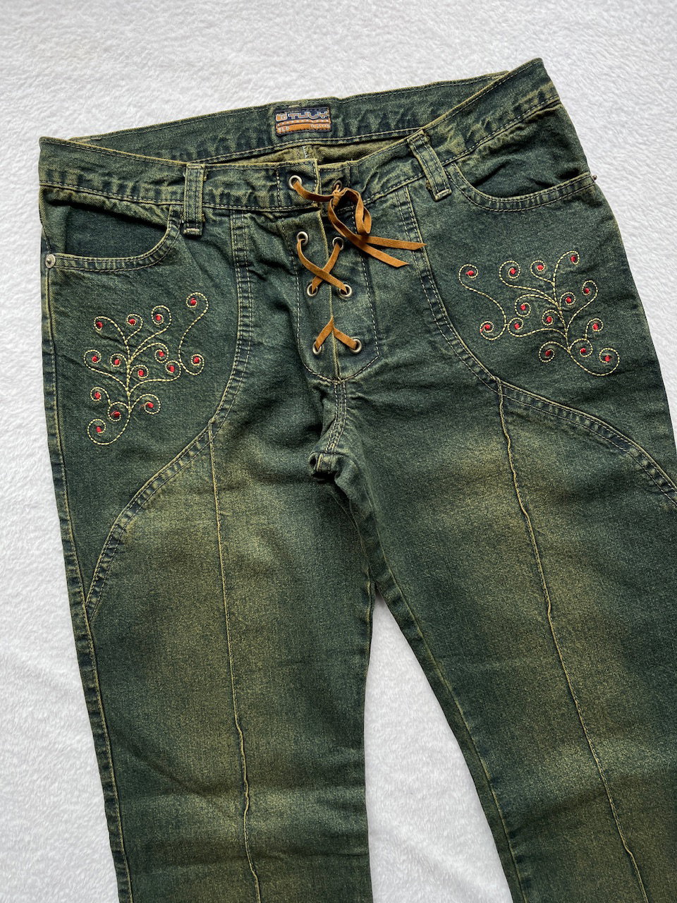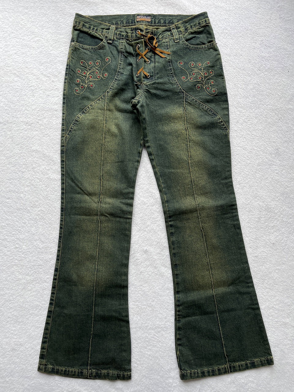 low rise green wash jeans t36