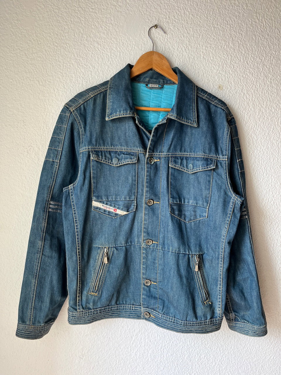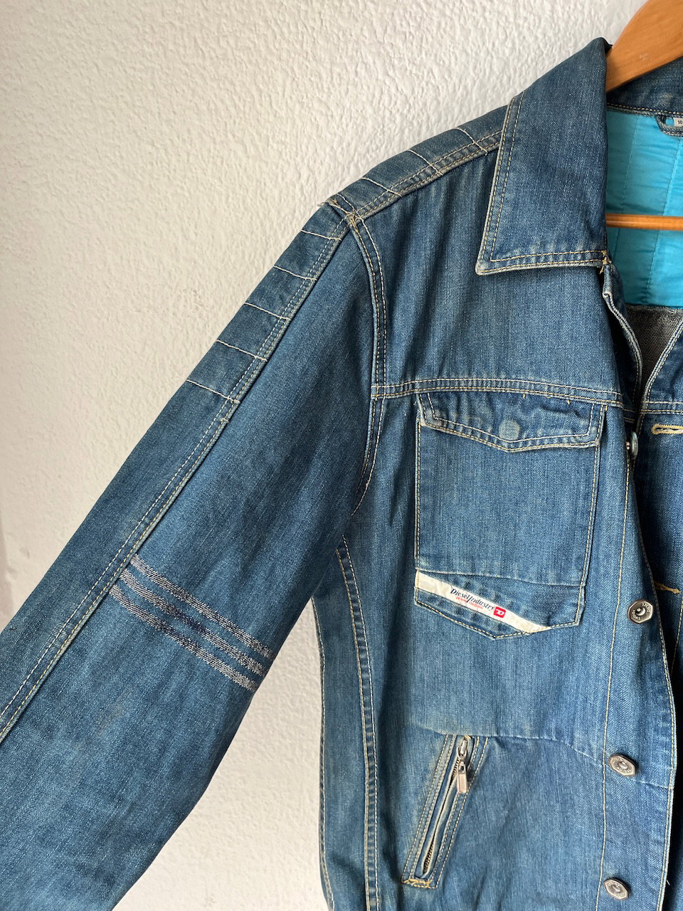 campera de jean original de la marca diesel en colaboración con adidas