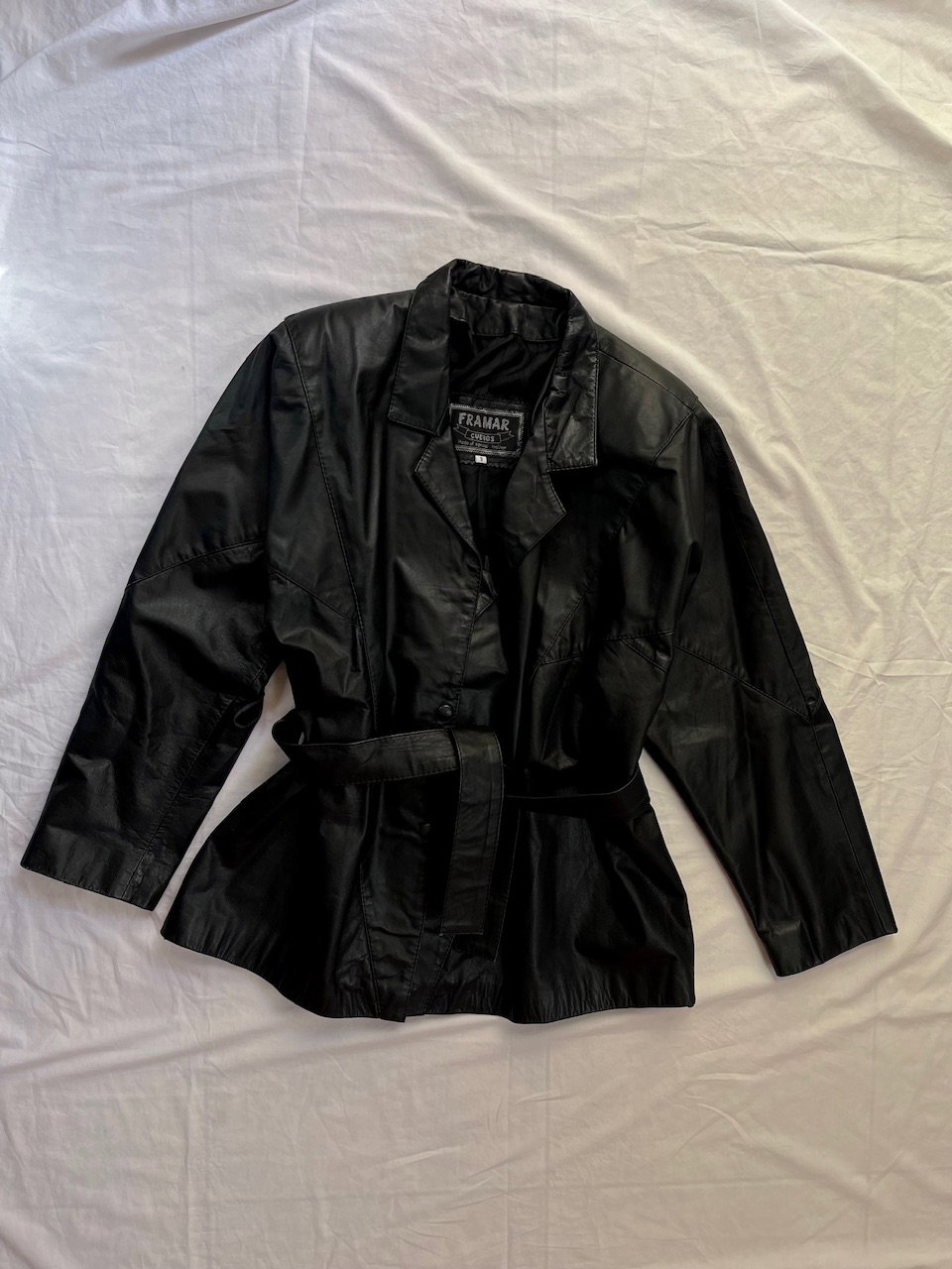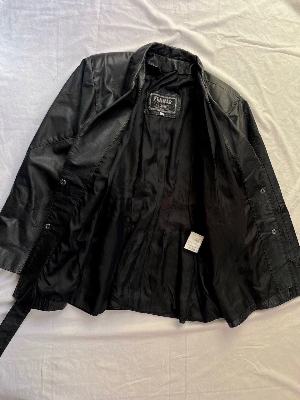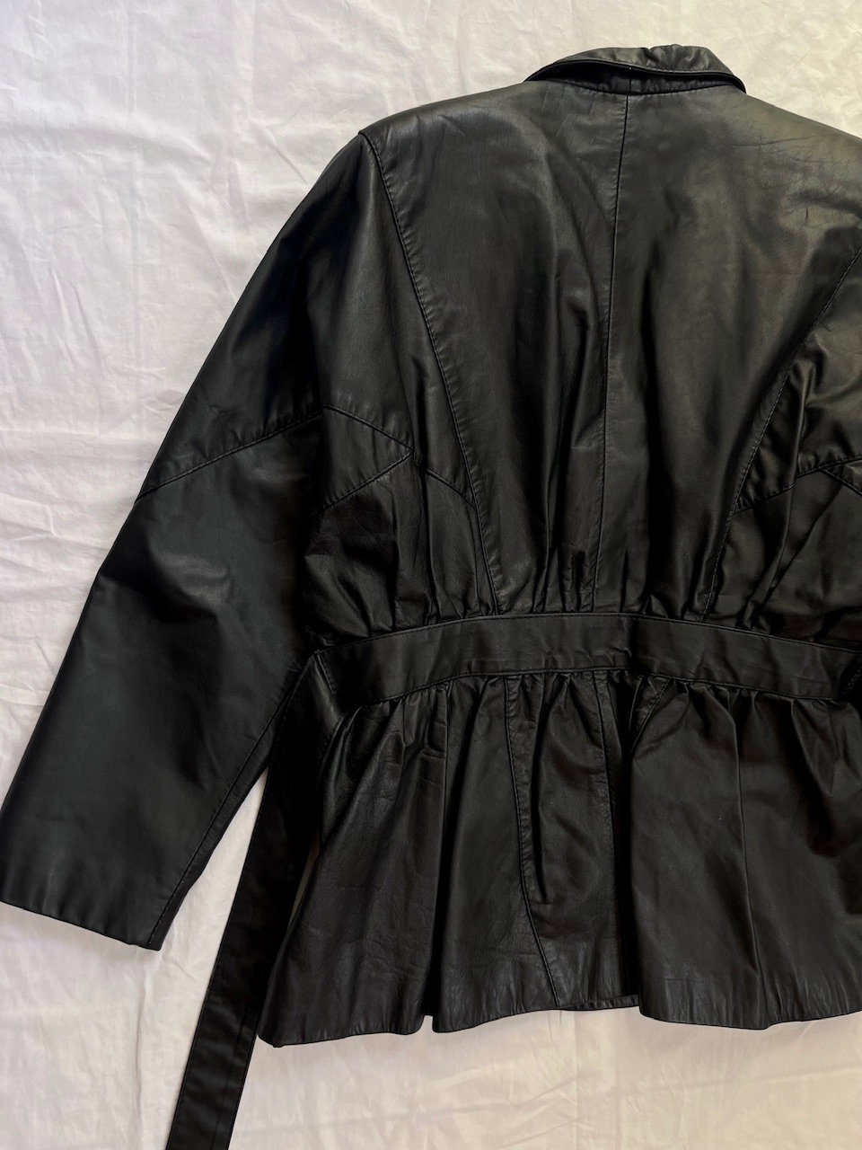 jacket de cuero genuino forrada en matelasse con botones y cinturón a juego. es original de los 80s con mangas murciélago, marca muchísimo la cintura. talle m grande o L chico