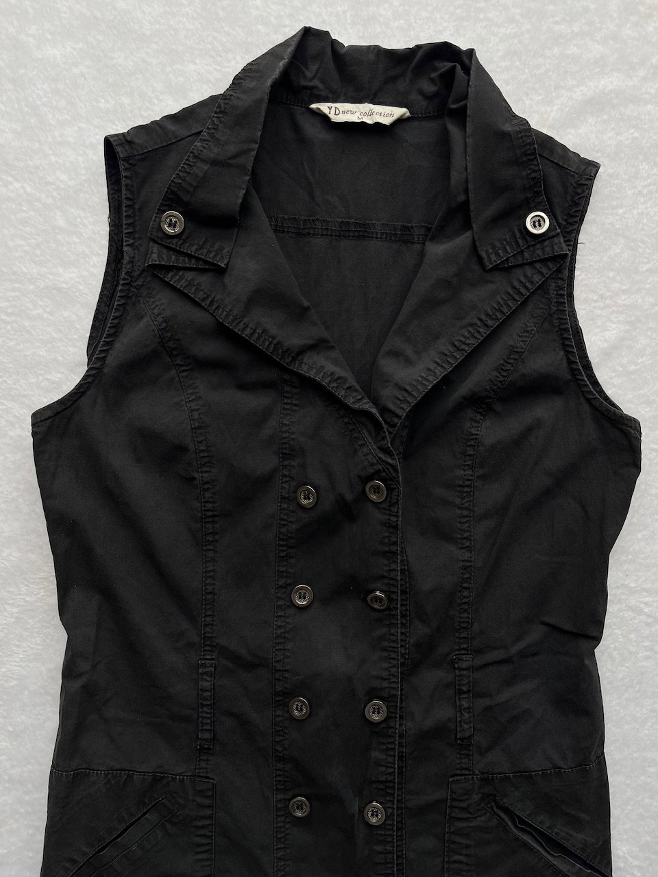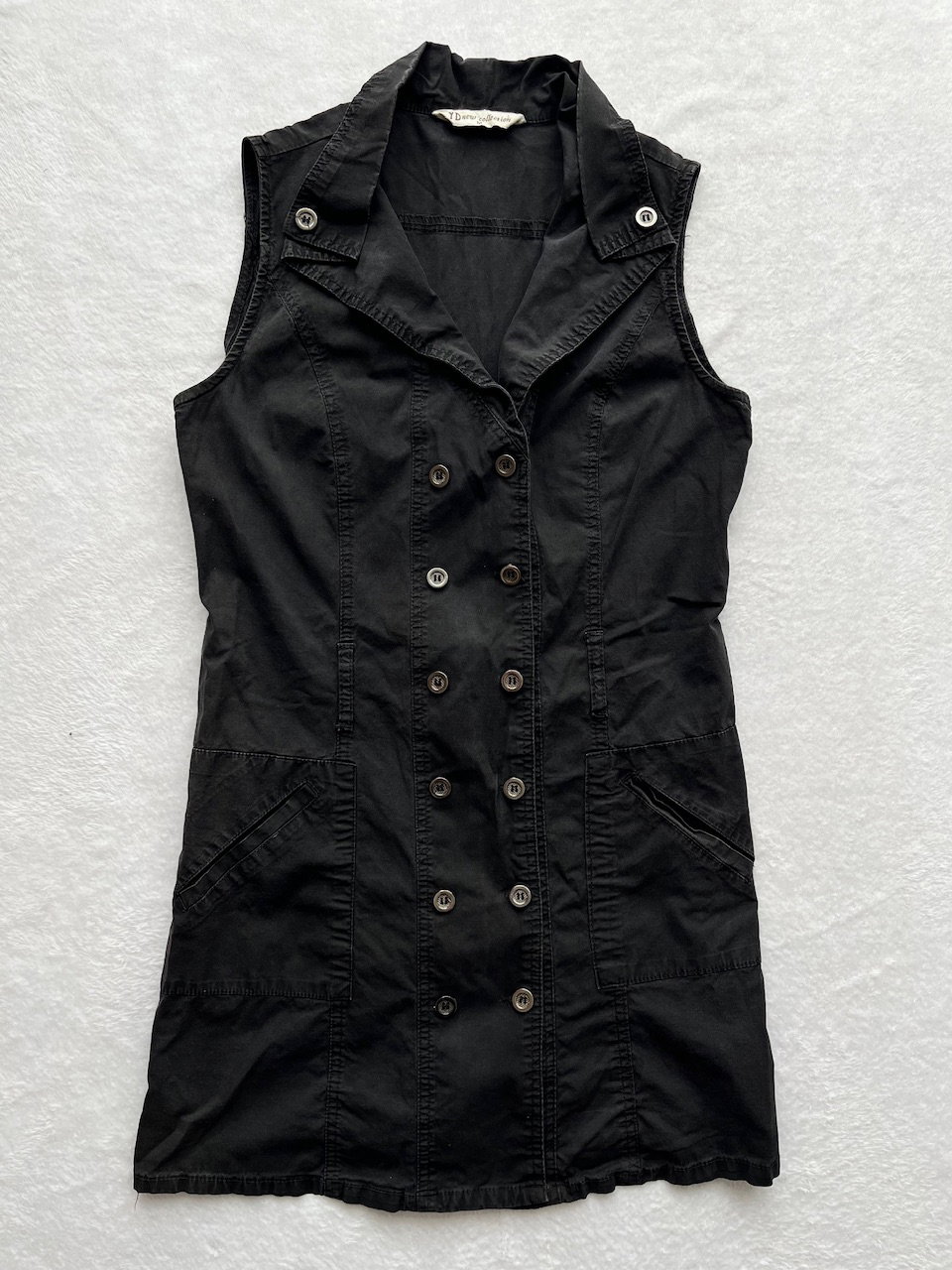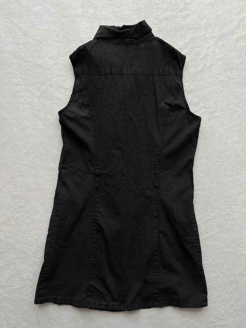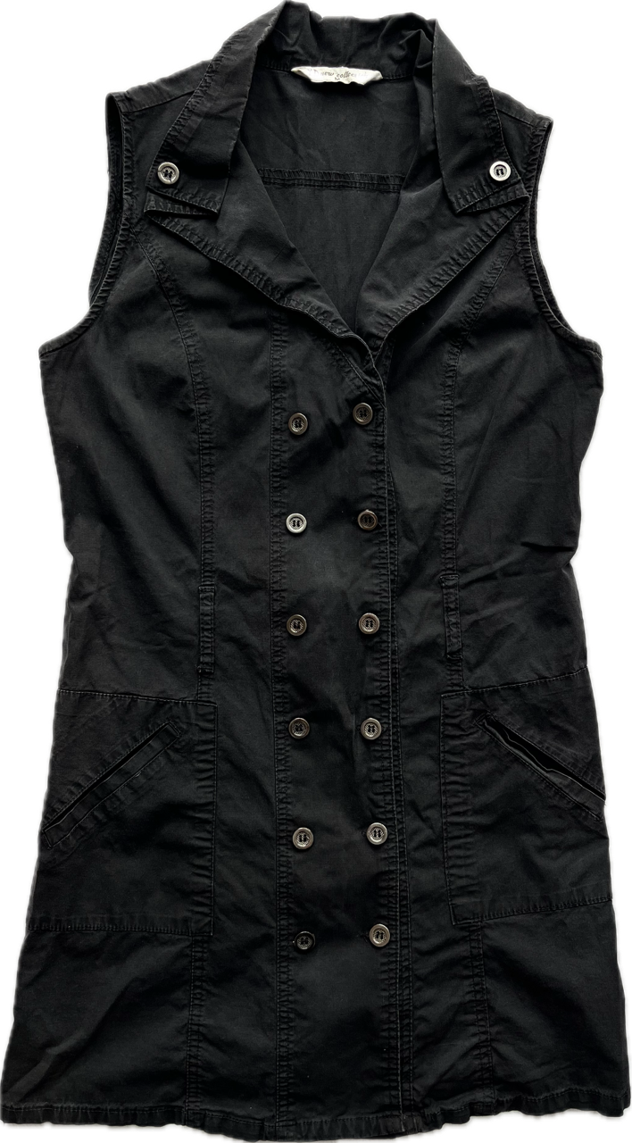 mini dress con botones funcionales en el frente y cuello camisero, cuenta con pasa cinto. es un vestido chiquito y cortito. ideal para usar con medias, un mini short y botas caña alta. es talle xs/s