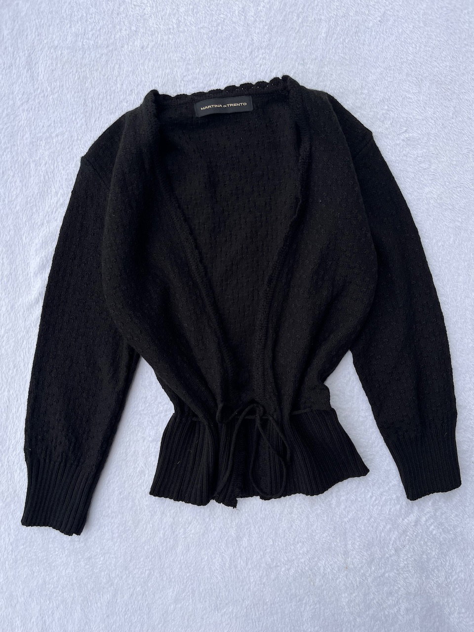 hermoso bolerito estilo saquito. es todo de lana labrado con mini florecitas. se puede ajustar en la cintura. original de los 00s de la marca nacional martina di trento. nuevo sin uso
