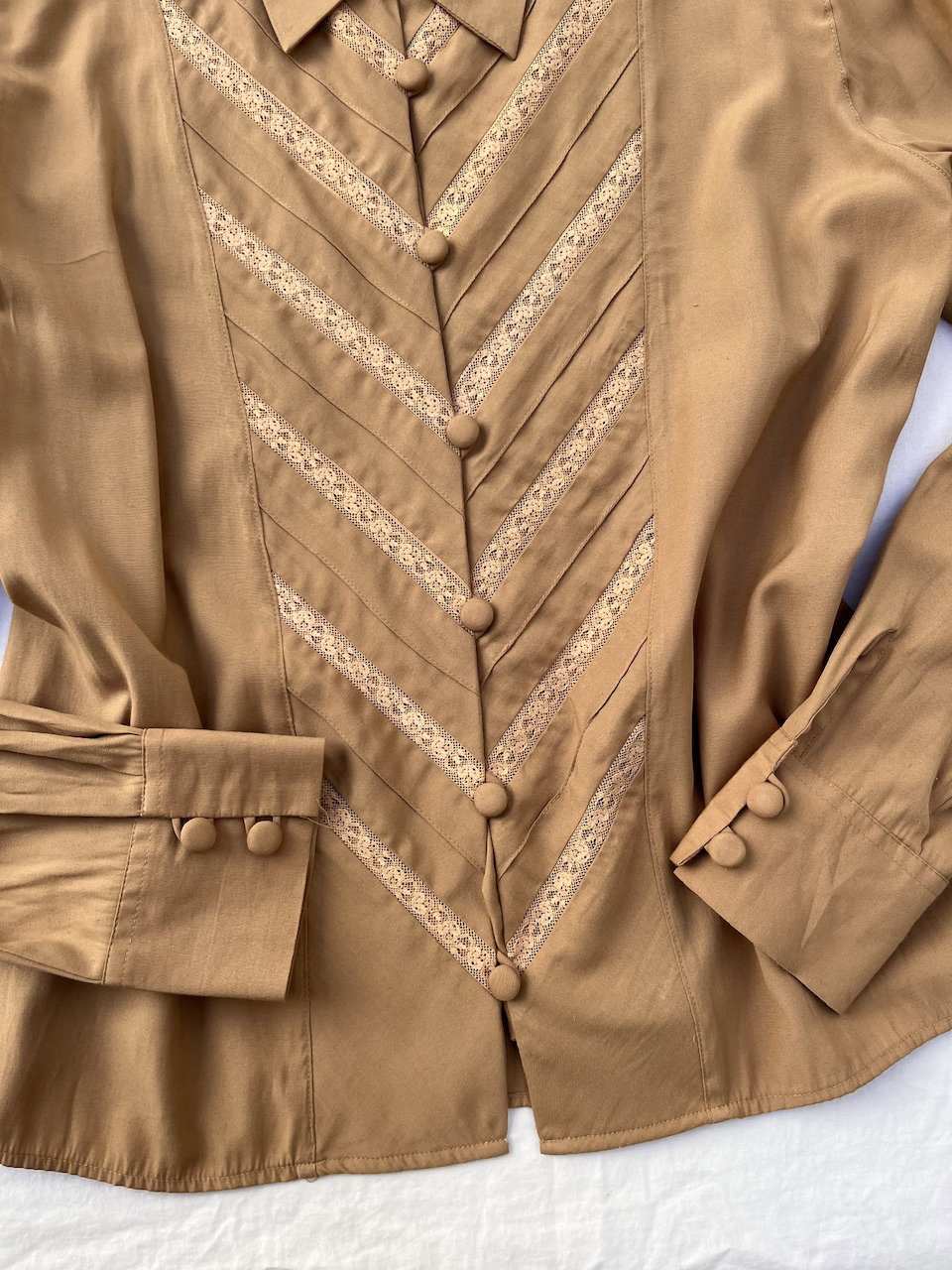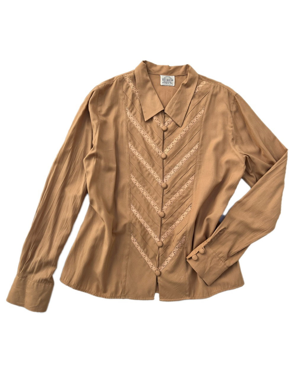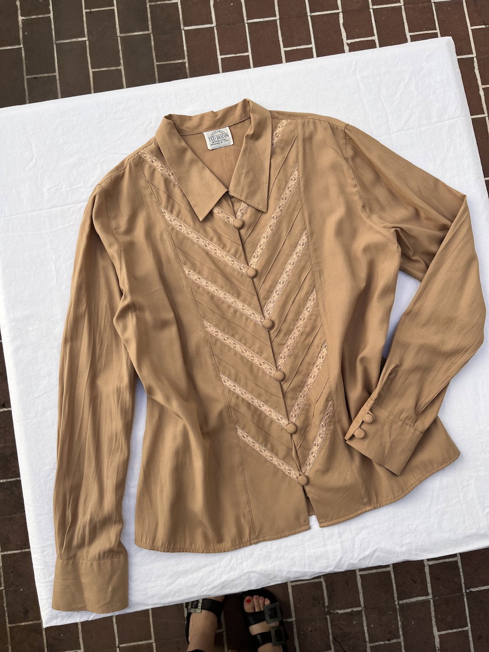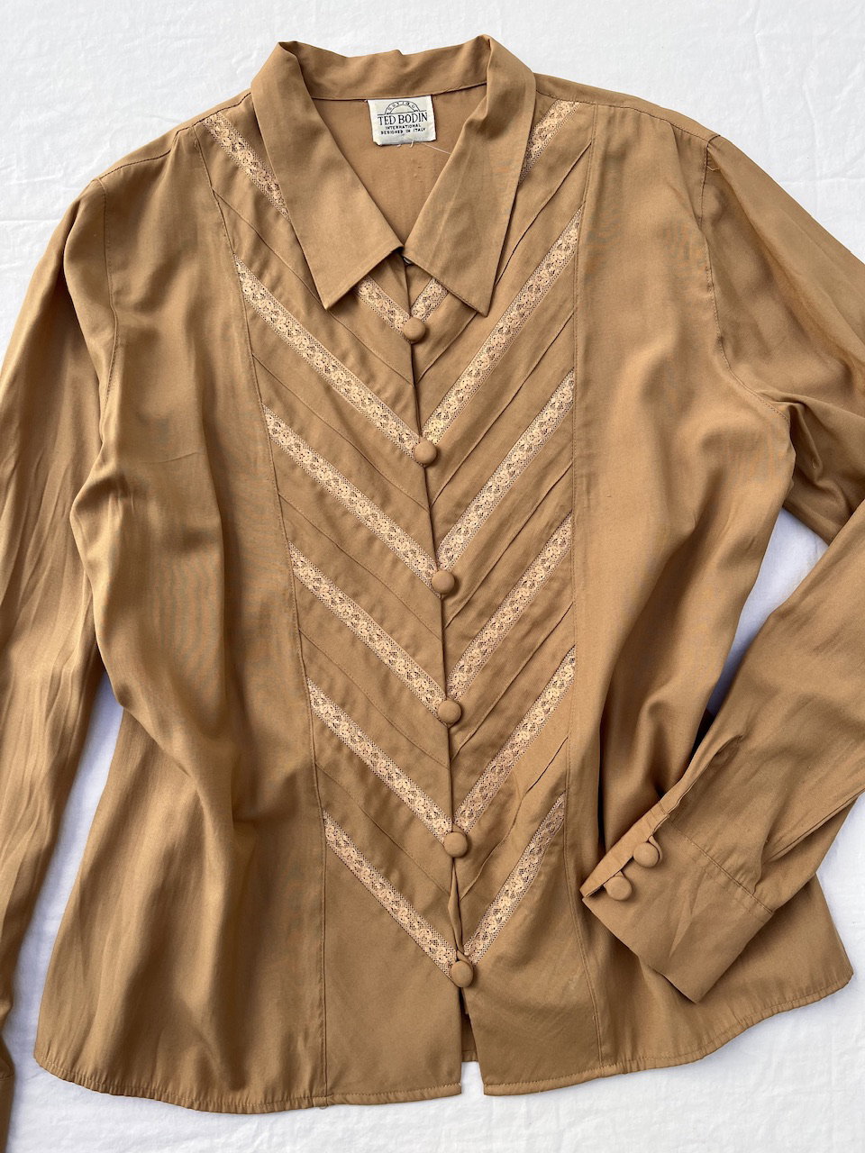 camisa vintage de la marca ted bidón. es de algodón con detalles de encaje y botones forrados a juego. talle m aprox.