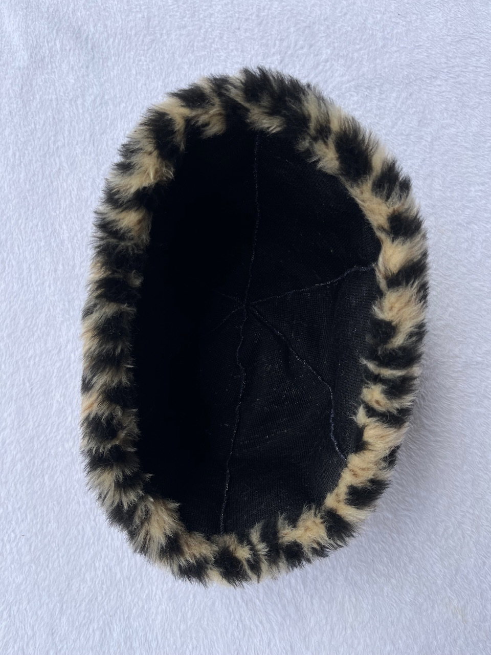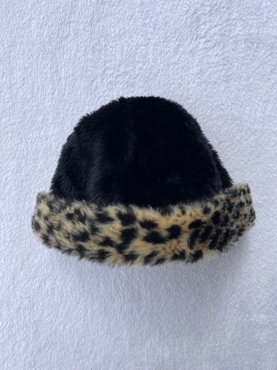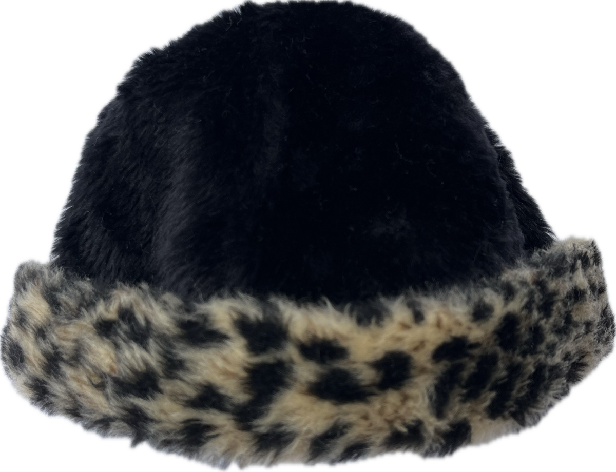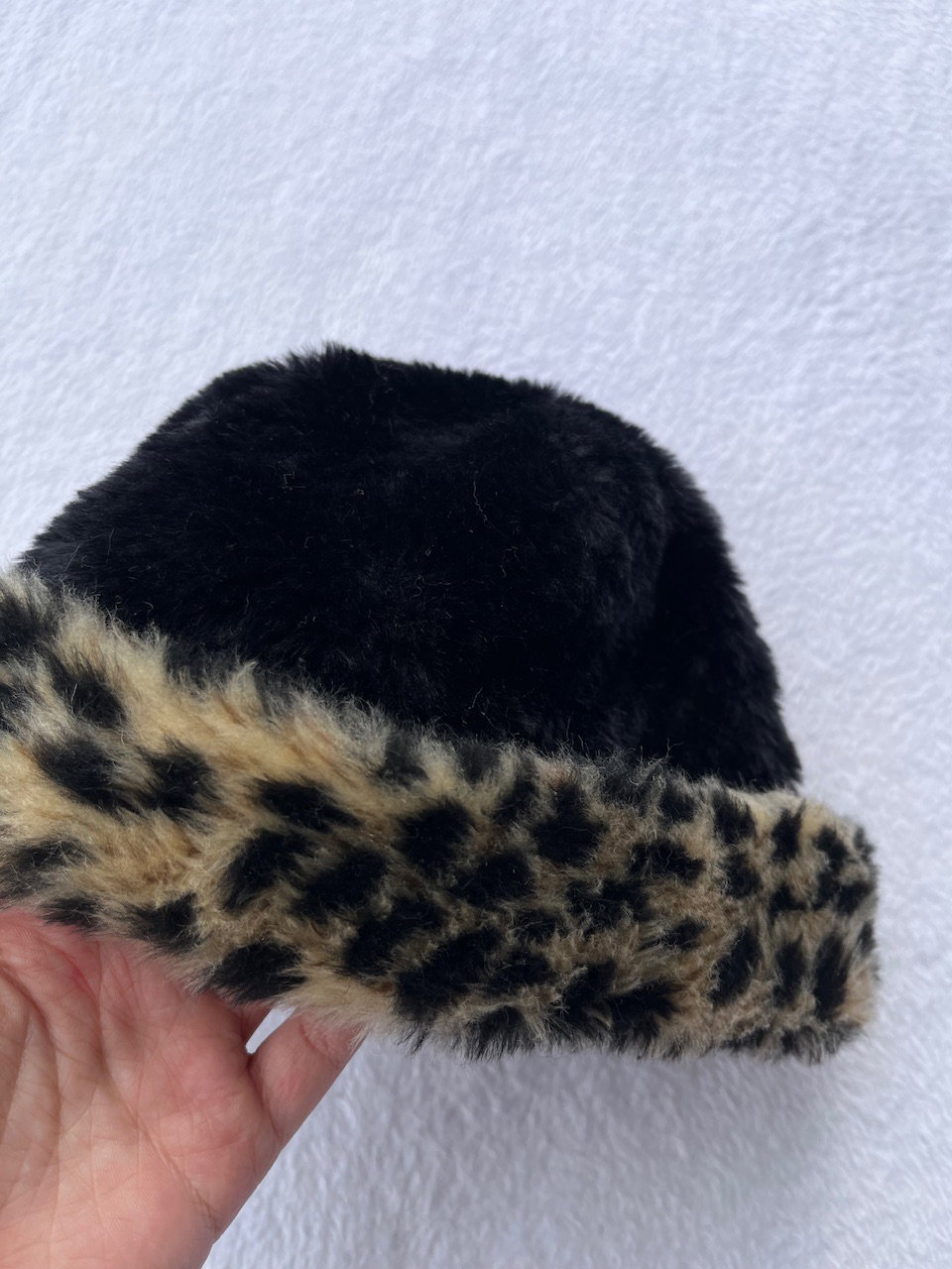 gorro de peluche súper bonito y calentito para el invierno, puede usarse a gusto según como se acomode el dobladillo animal print