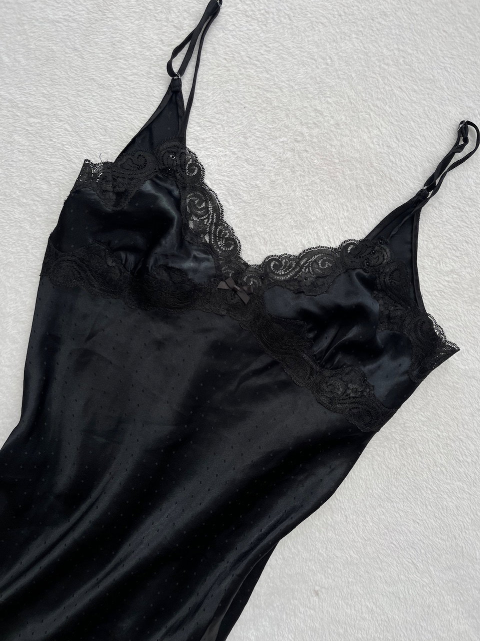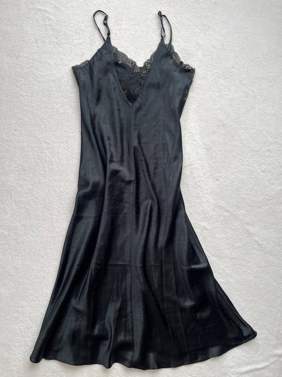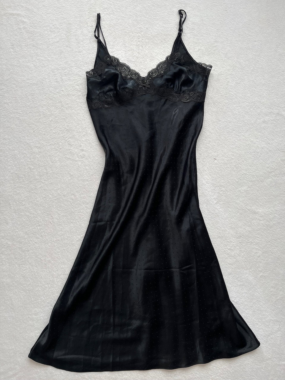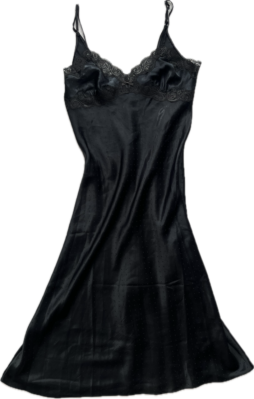 vestido camisolín original de los 90s de raso estampado con detalles de encaje. talle L. nuevo sin uso