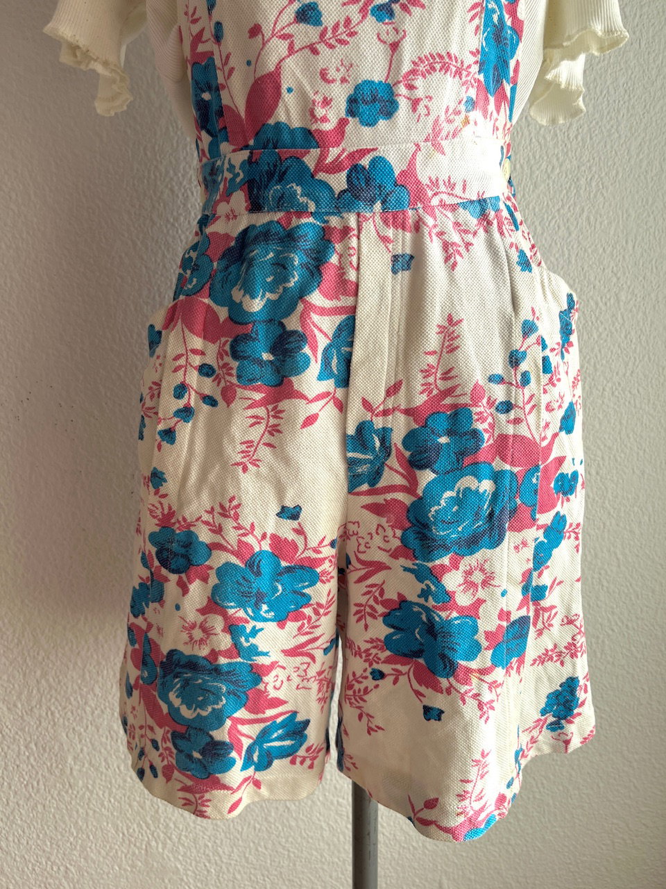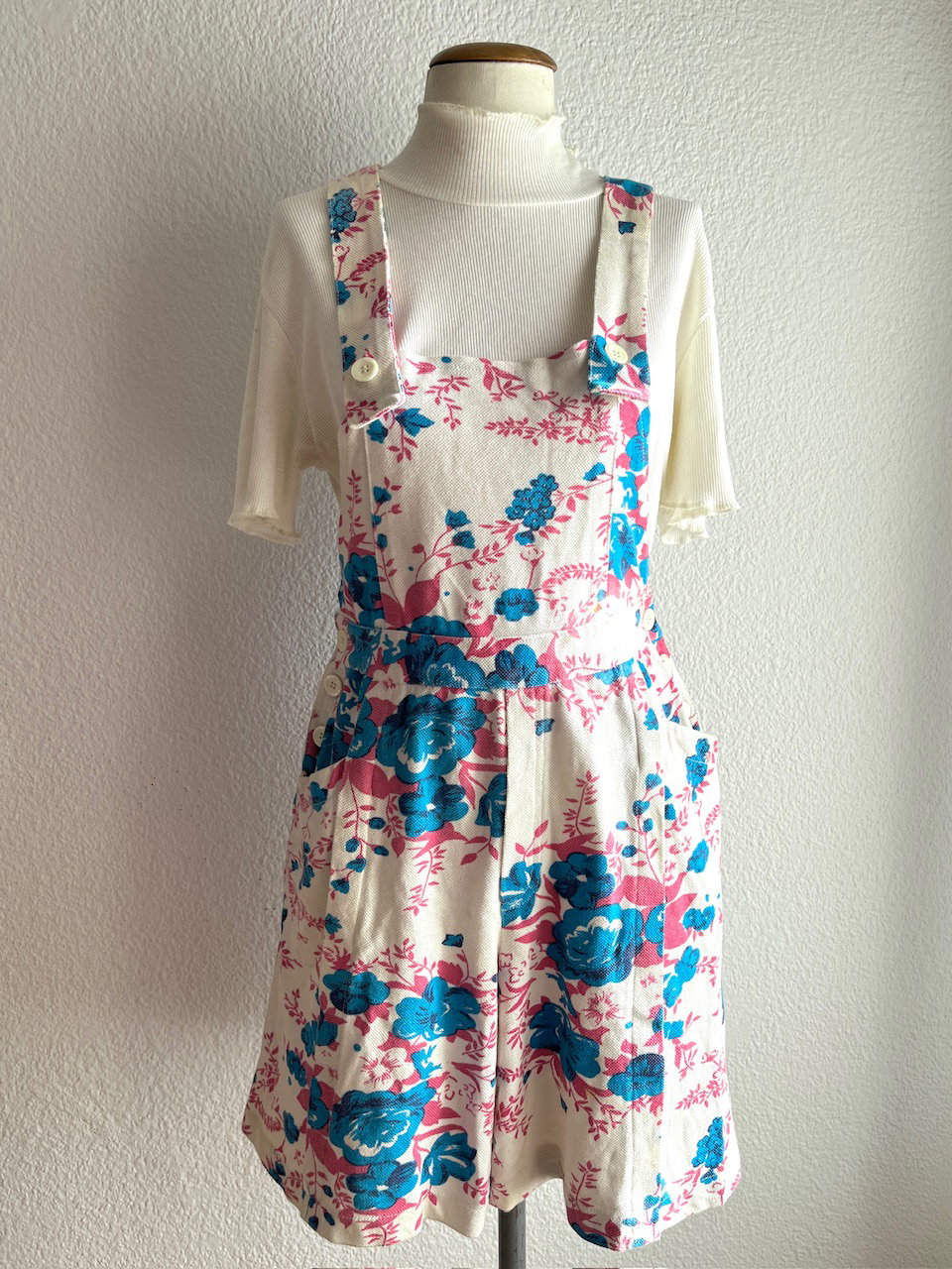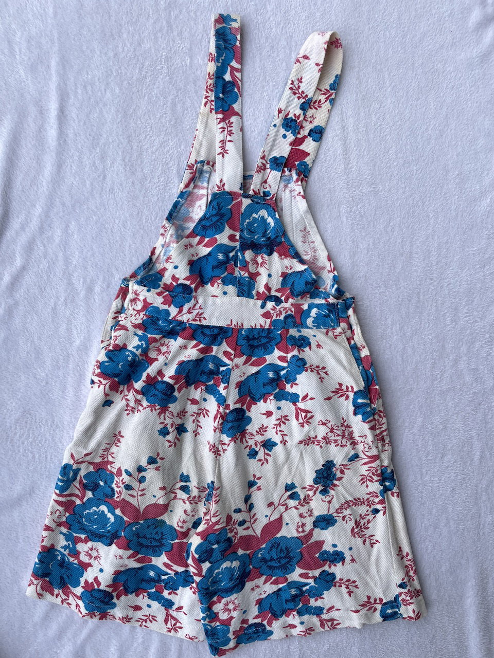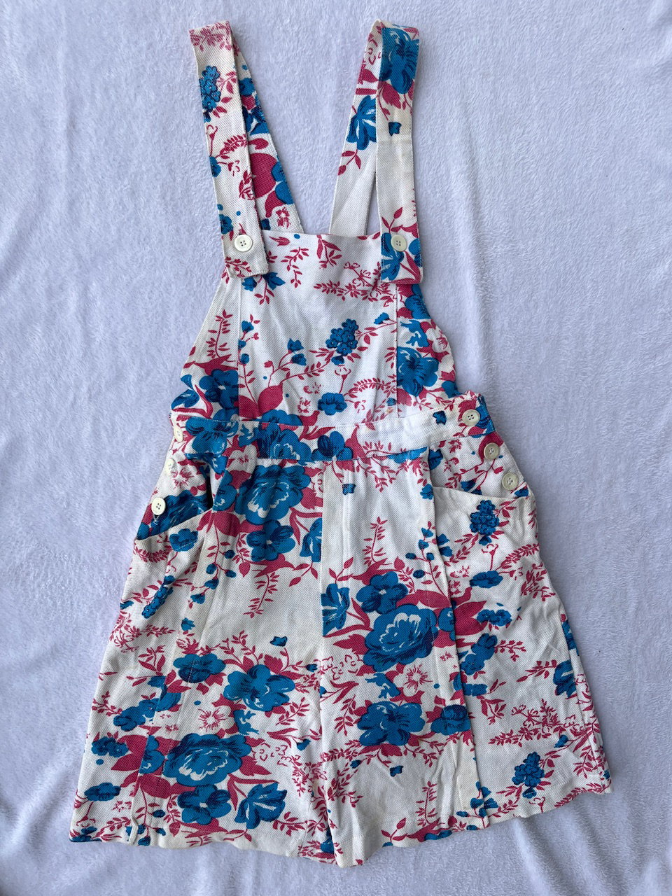 jardinero vintage tipo jumper con short amplio, queda como una falda. tiene bolsillos. buen estado general pero con detalles, ver fotos. talle 36 a 40 aprox