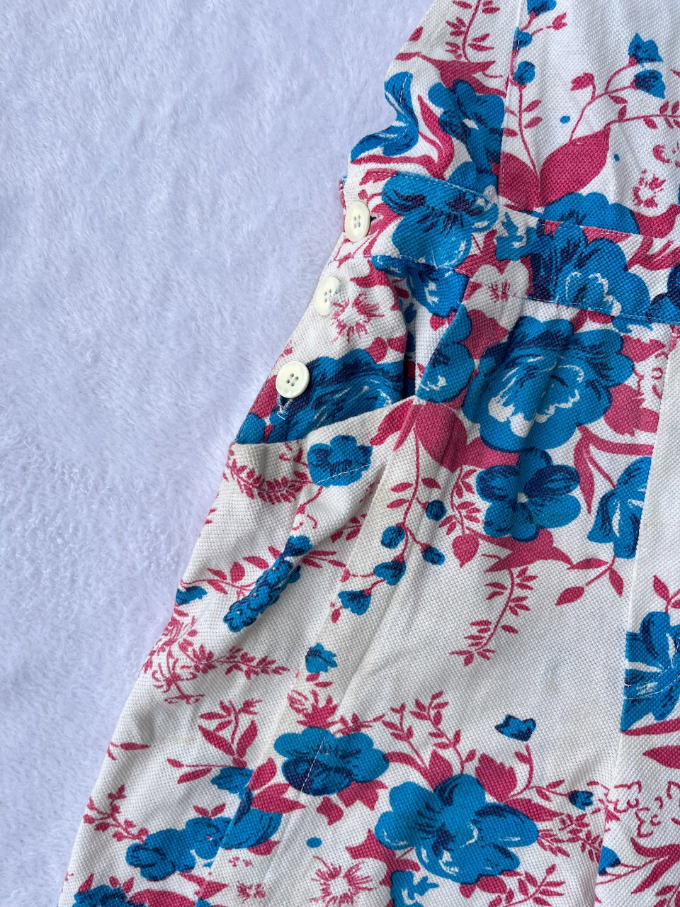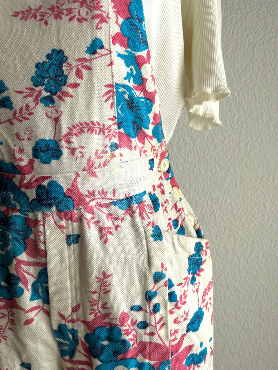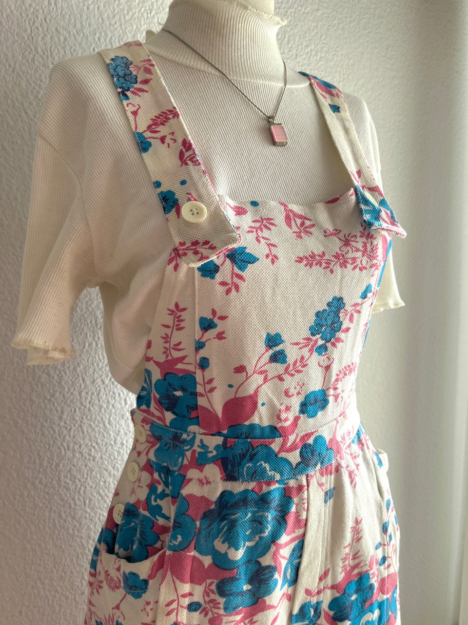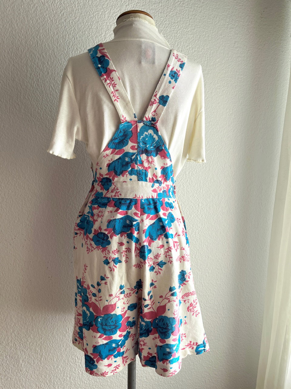 jardinero vintage tipo jumper con short amplio, queda como una falda. tiene bolsillos. buen estado general pero con detalles, ver fotos. talle 36 a 40 aprox