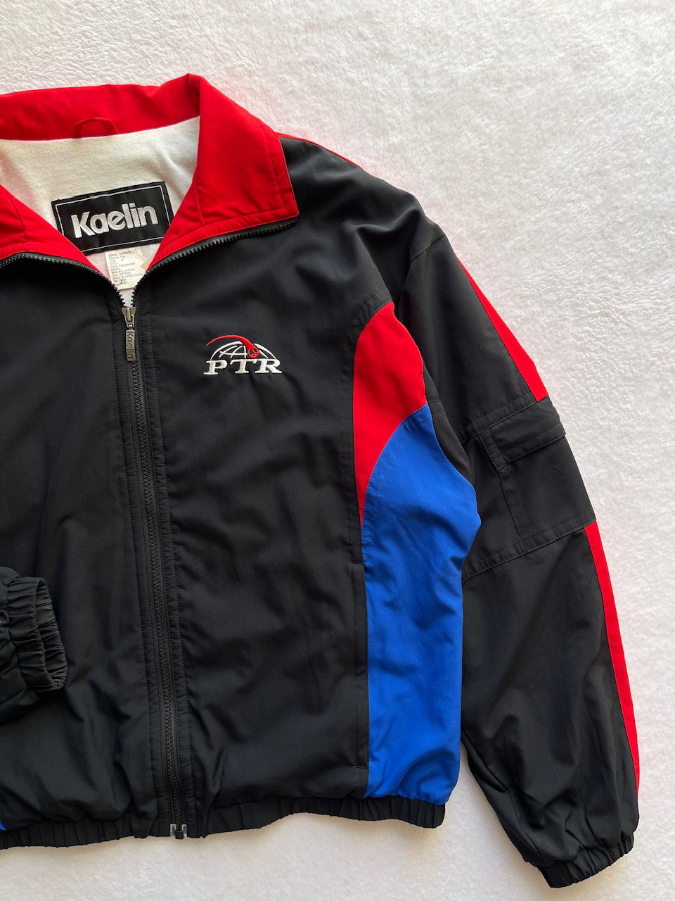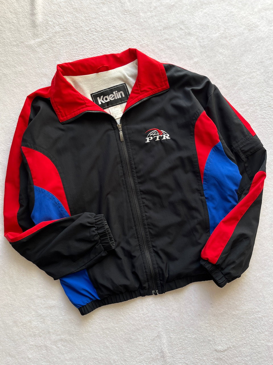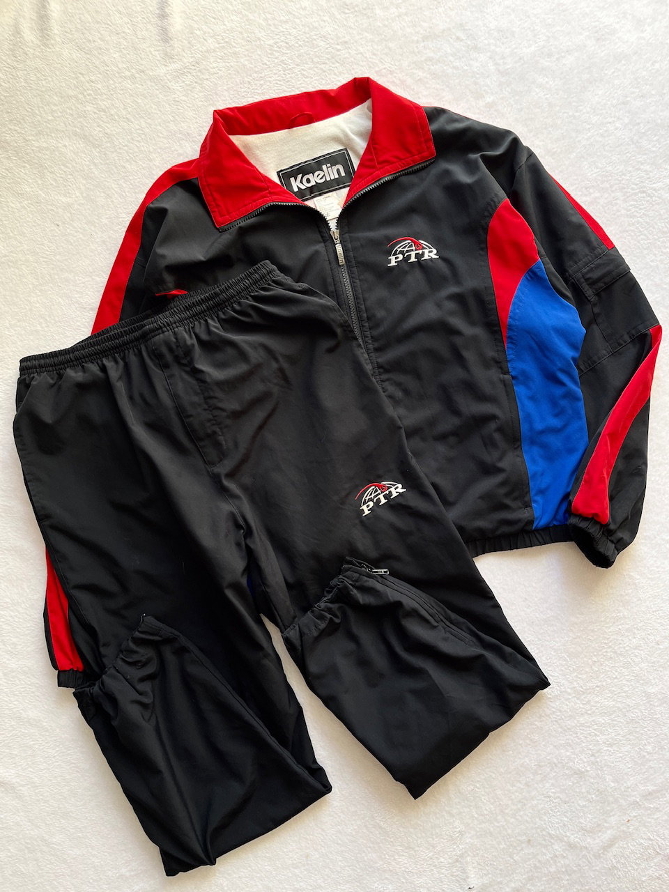 conjunto deportivo de rompevientos de la professional tennis registry de USA en los 90s, campera y pantalon. ambos en impecable estado, solo el pantalon tiene unos enganches puntuales (ver fotos) La campera cuenta con un bolsillo en la manga, el pant tiene cierres en los puños, dos bolsillos delanteros y un bolsillo trasero con cierre