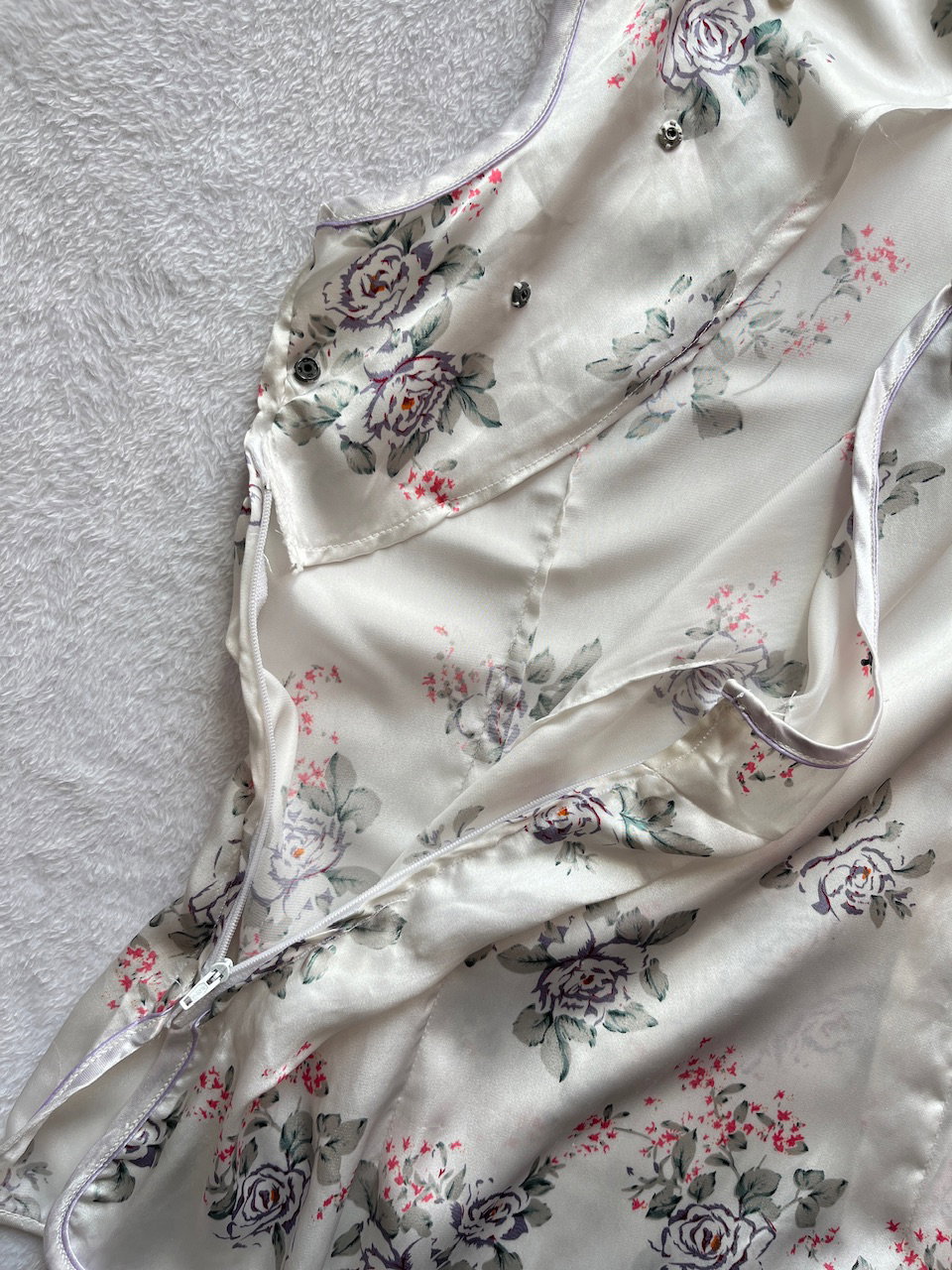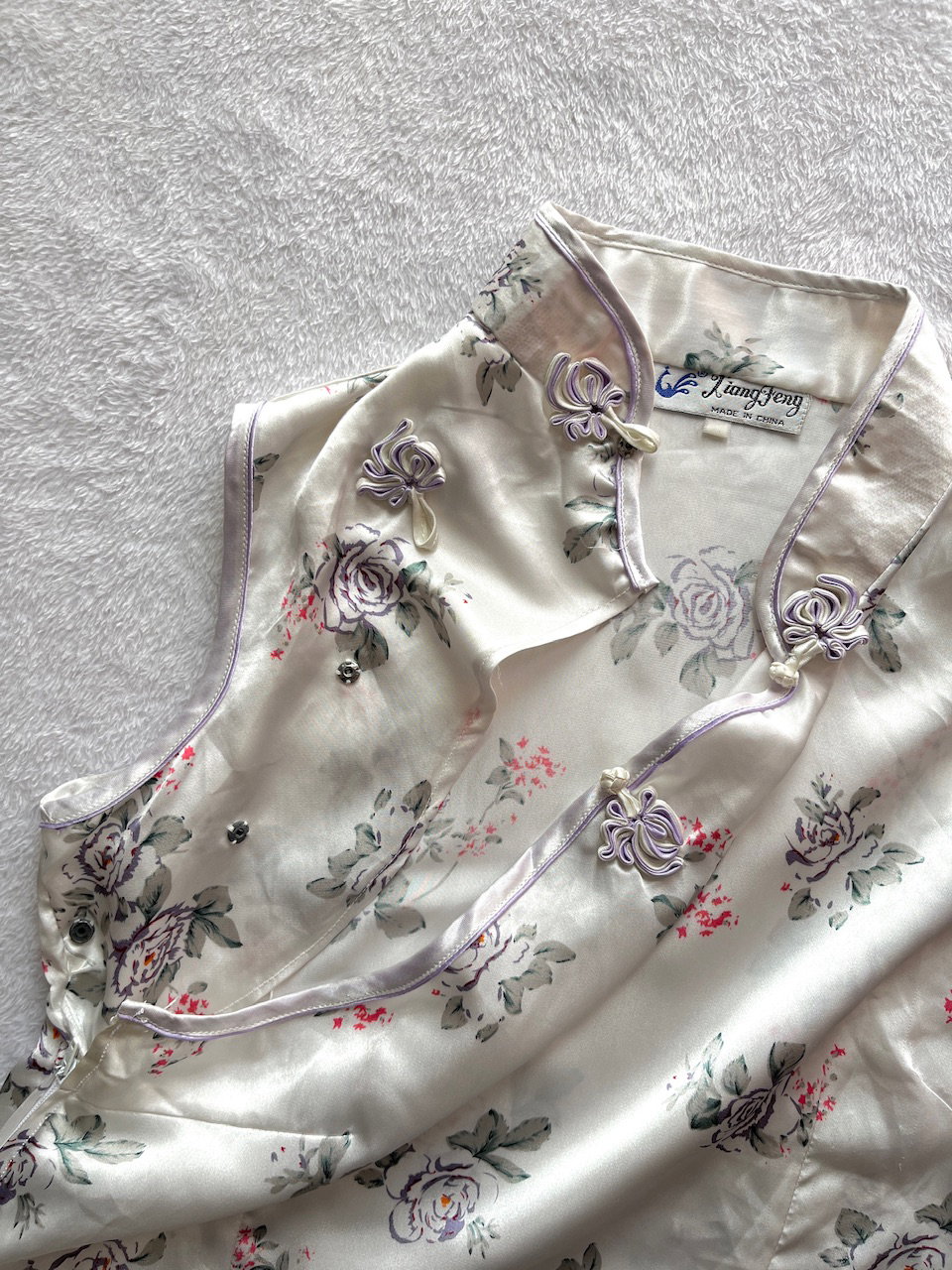 qipao chino original, de tela tipo raso. se accede a la prenda con cierre, botones invisibles. talle M grande o L chico. usado pero en impecable estado general