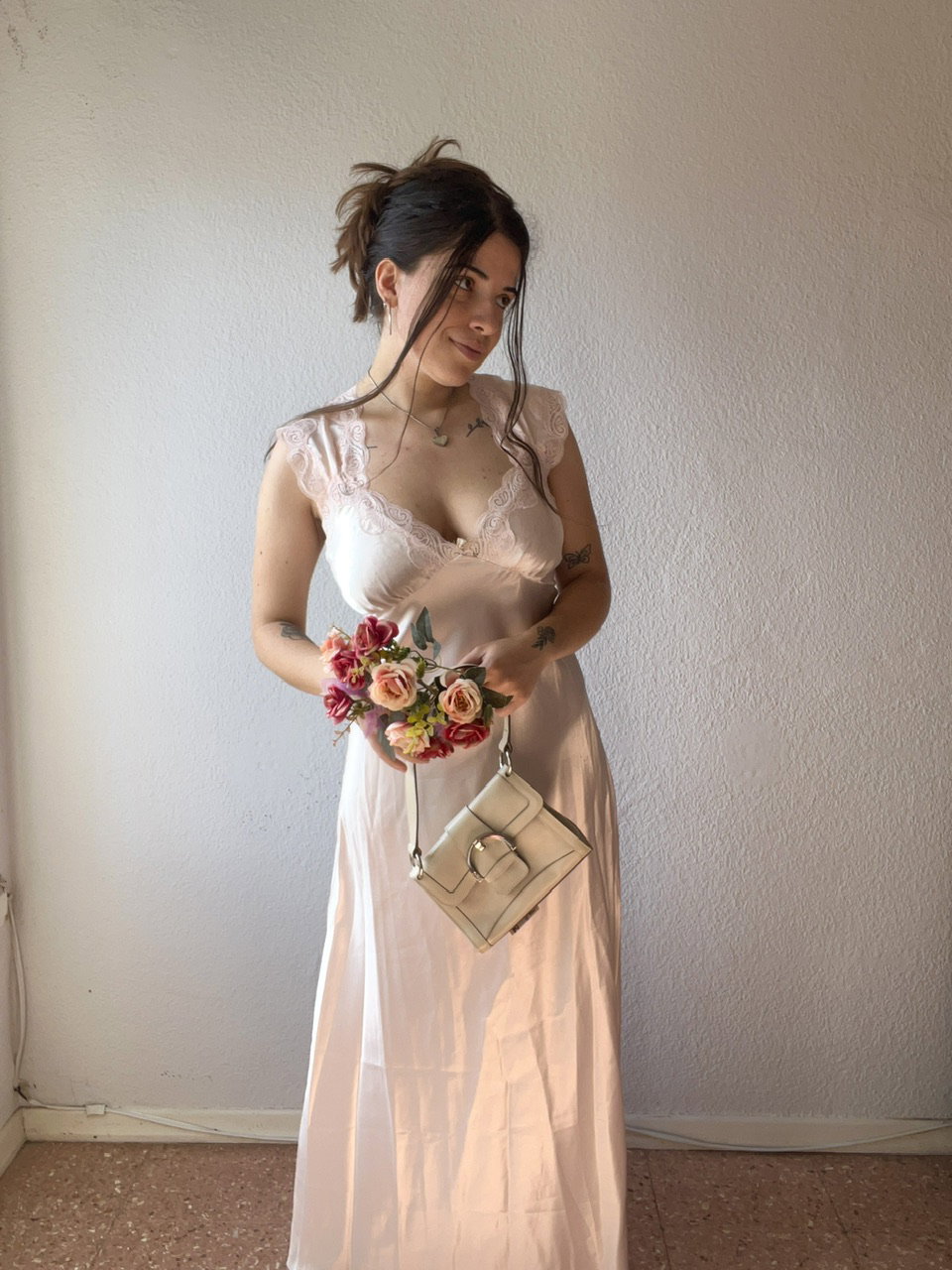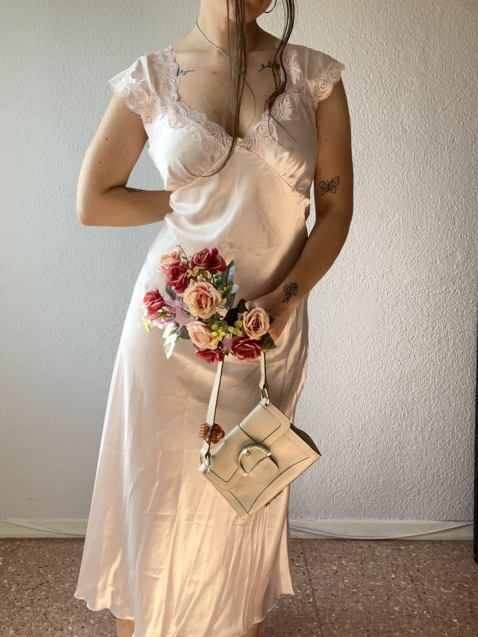 vestido de satén original de los 90s, de confección modista, estilo camisolin. Como nuevo. excelente calidad