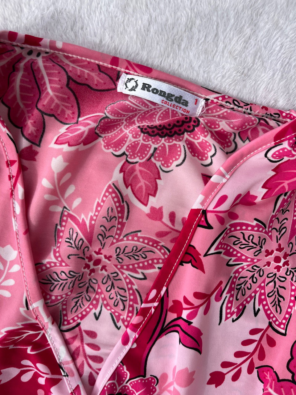 blusa de plush, con mangas acampanadas y aplique bordado en el escote