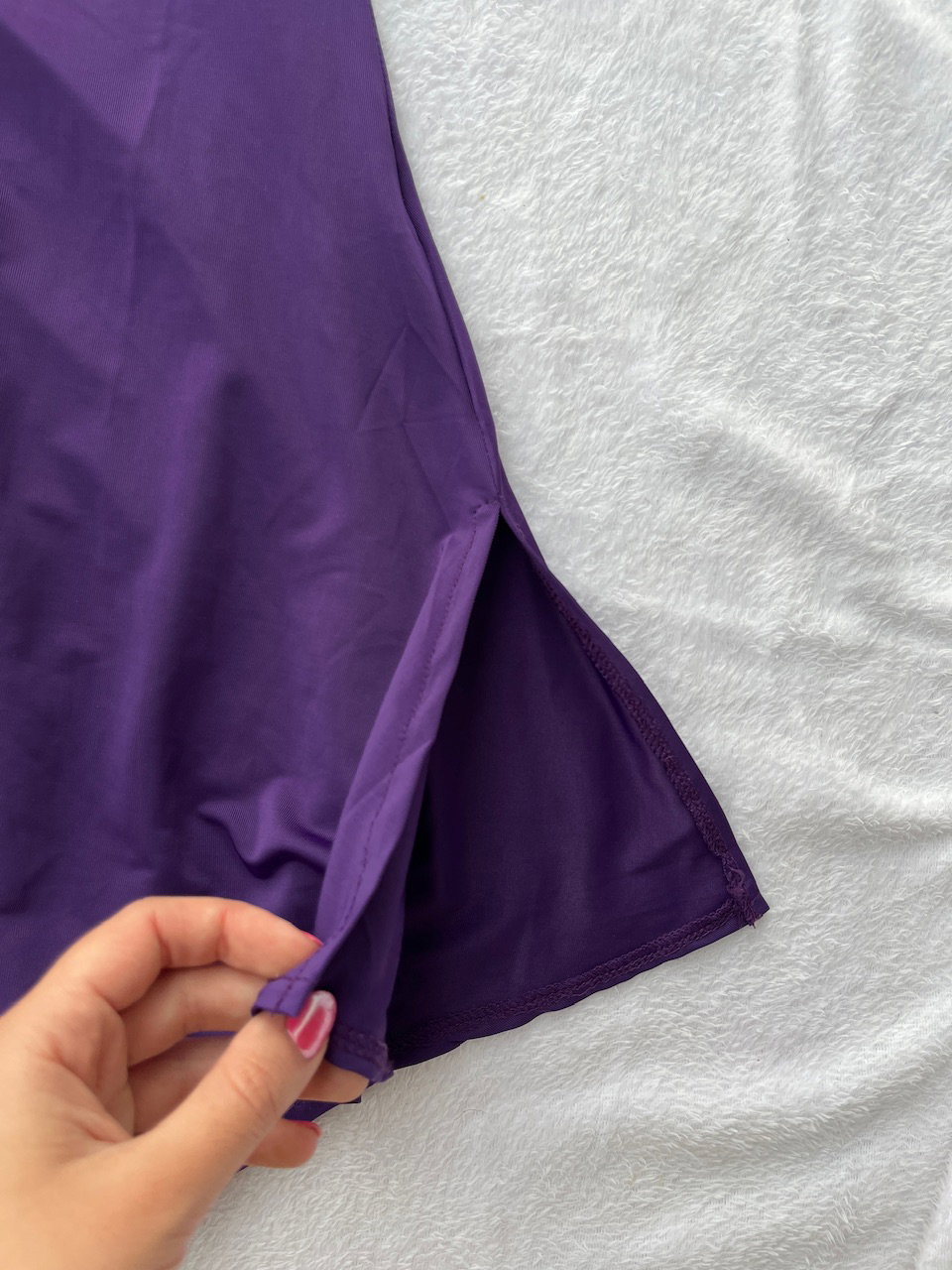 -escote tipo corset y marca la cintura, falda midi asimétrica con pequeño tajo lateral