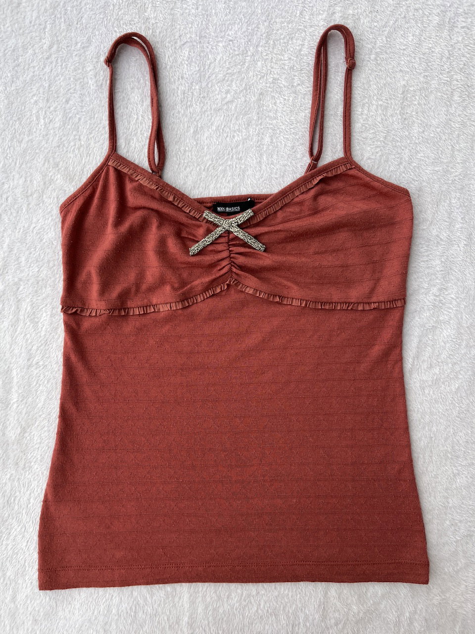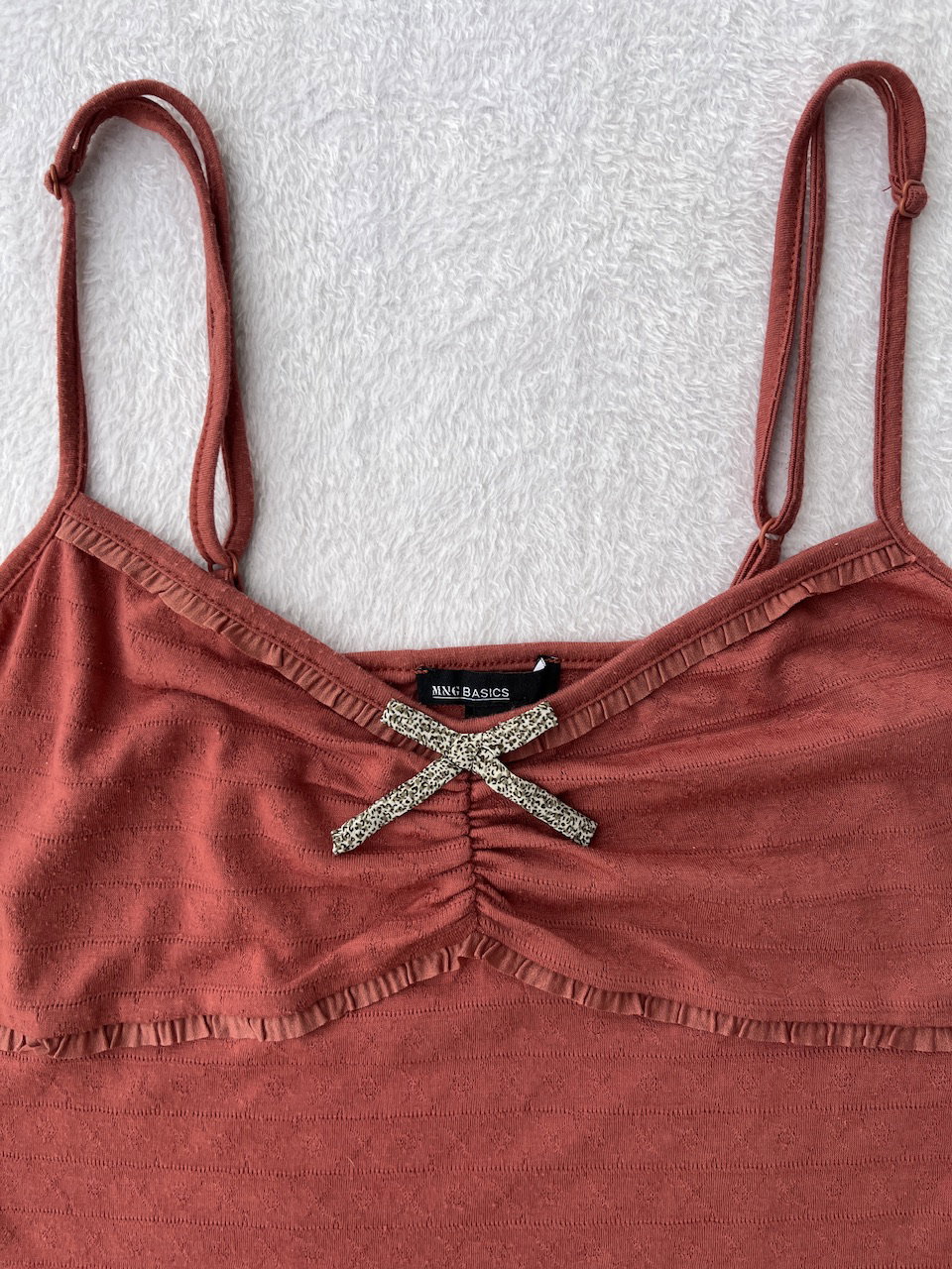 top y2k de los 00s con detalles muy bonitos de voladitos y moño