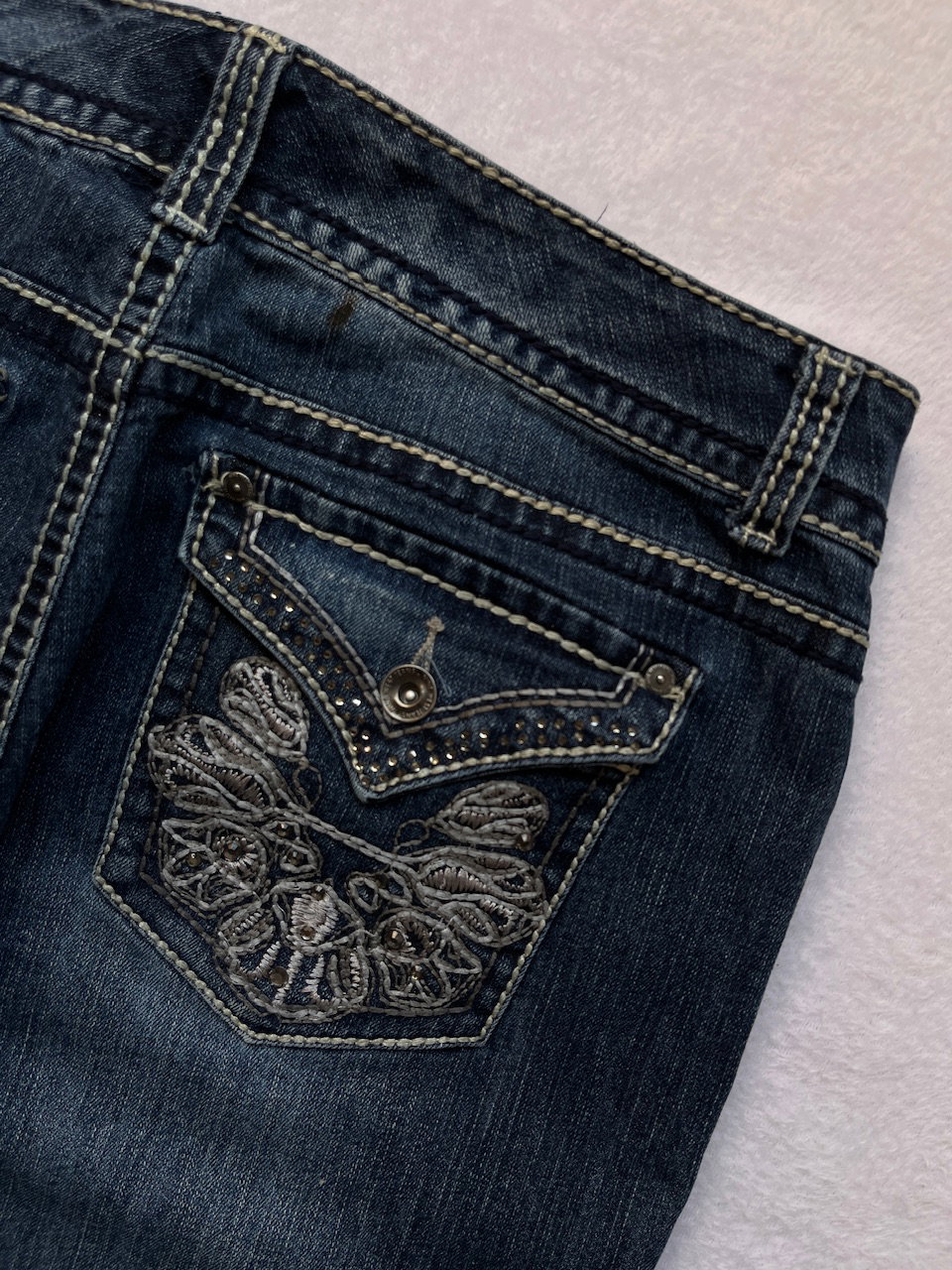 jean estilo miss me original de los 00s tiro alto y semi elastizado talle 46 aprox MEDIDAS (lado a lado) 44cm cintura 53cm cadera 29cm tiro largo 92