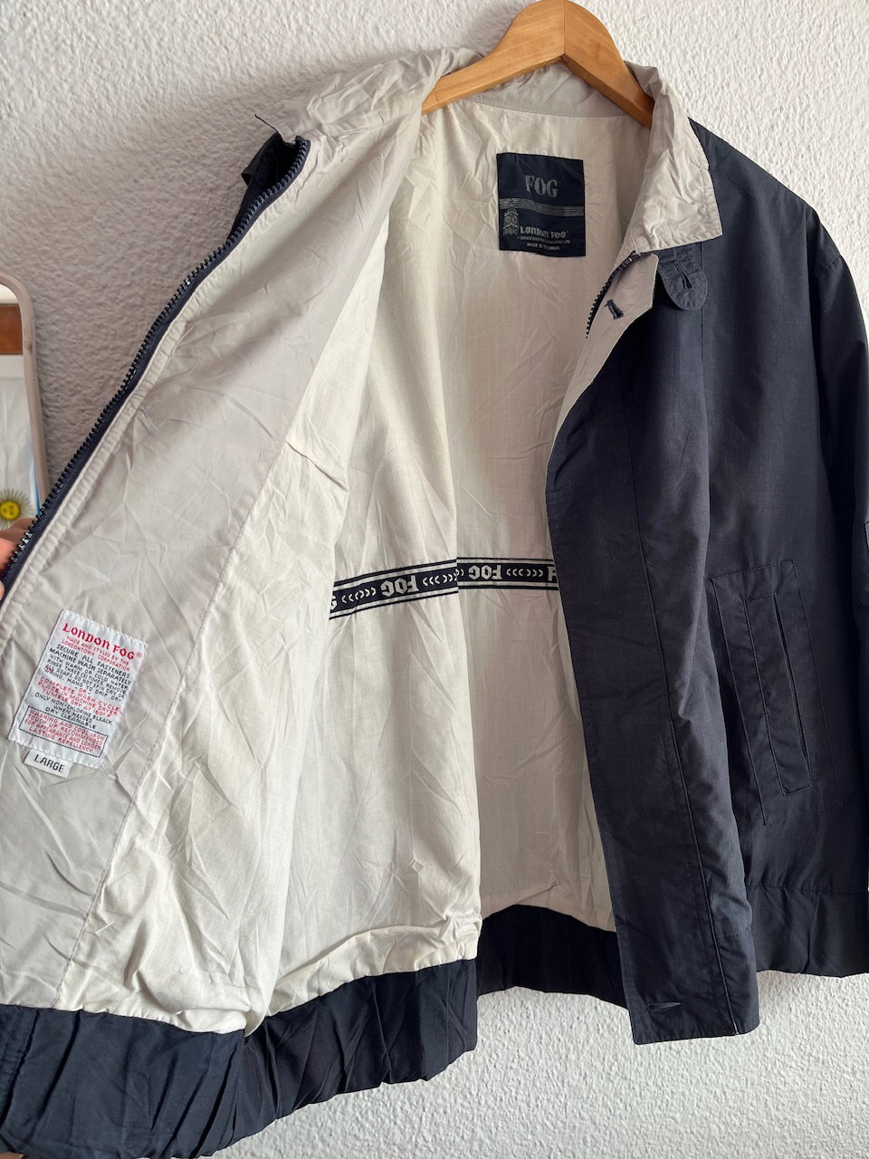 bomber impermeable de la marca inglesa london fog. original de los 90s sin hombreras cuello regulable. cuenta con bolsillos delanteros y bolsilllo en uno de los brazos. el color esta un 9/10 MEDIDAS (lado a lado) 56cm hmbr a hmbr 70cm ax a ax 67cm largo 64cm largo de manga