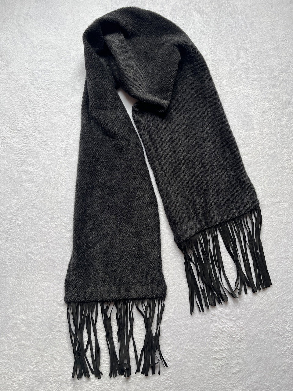bufanda de lana tejida en telar con flecos de cuero. excelente calidad. super calentita MEDIDAS 160cm de largo x 30cm ancho