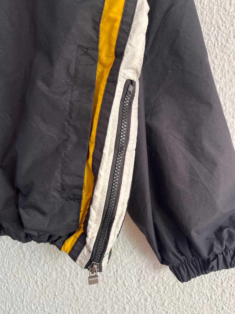 buzo tipo rompevientos, impermeable con cierre en un lateral y para ajustar en la cintura. esta forrado y tiene bolsillos. vintage, de los 90s nuevo de deposito, ver unico detalle en el cierre talle L MEDIDAS (LADO A LADO) 56CM Hmbr a hmbr - 63cm ax a ax - 67cm largo - largo de manga 62cm