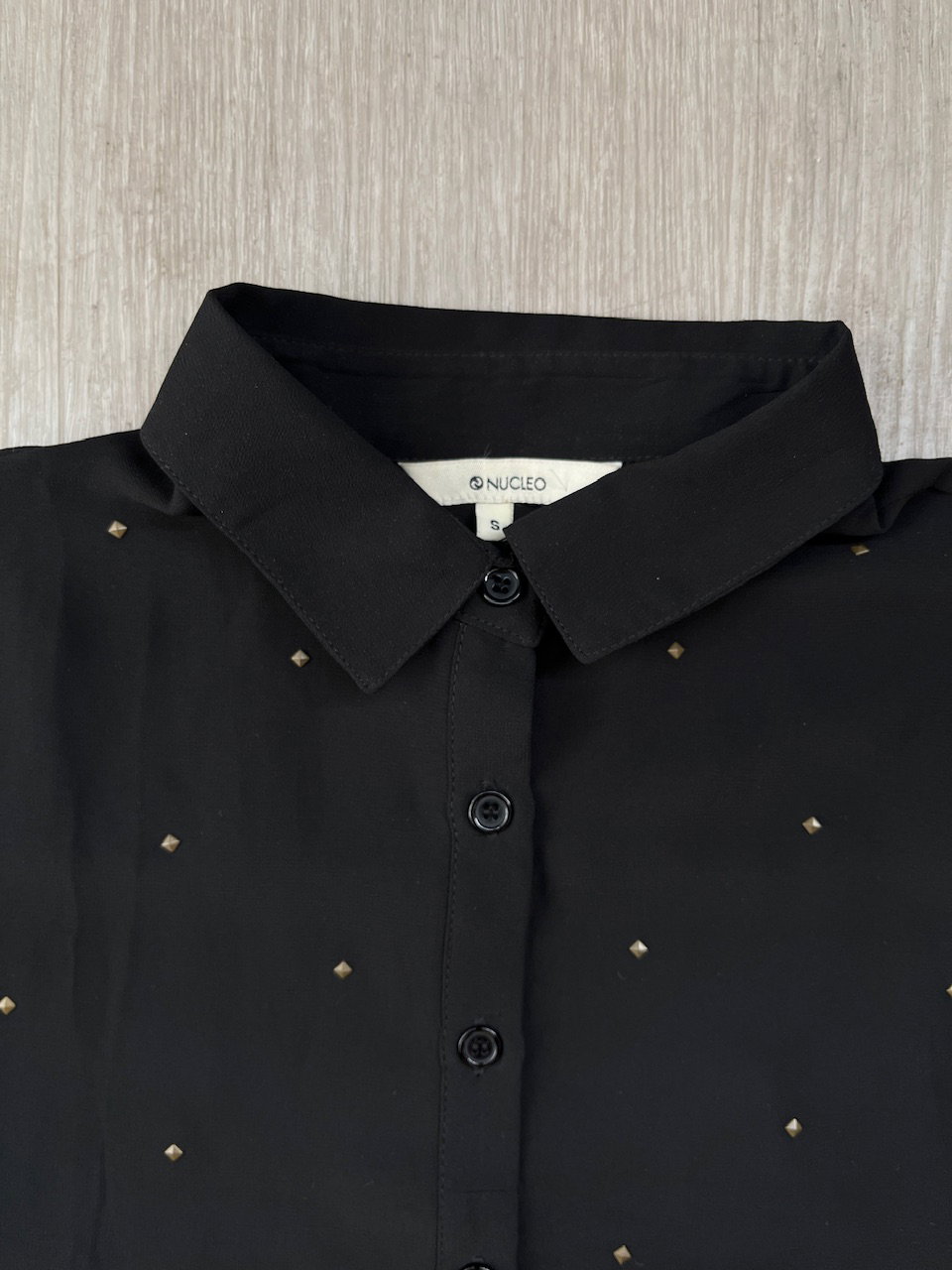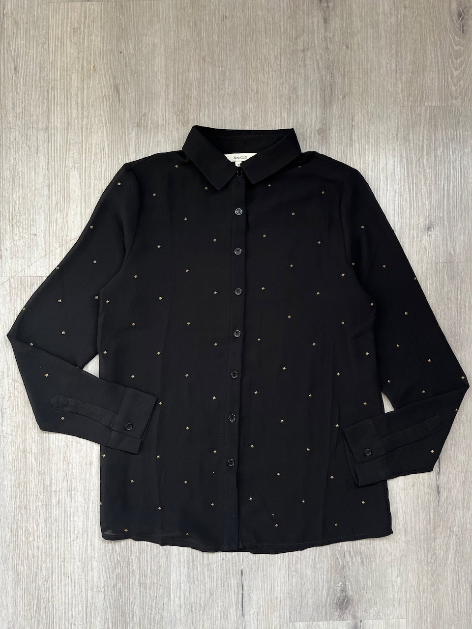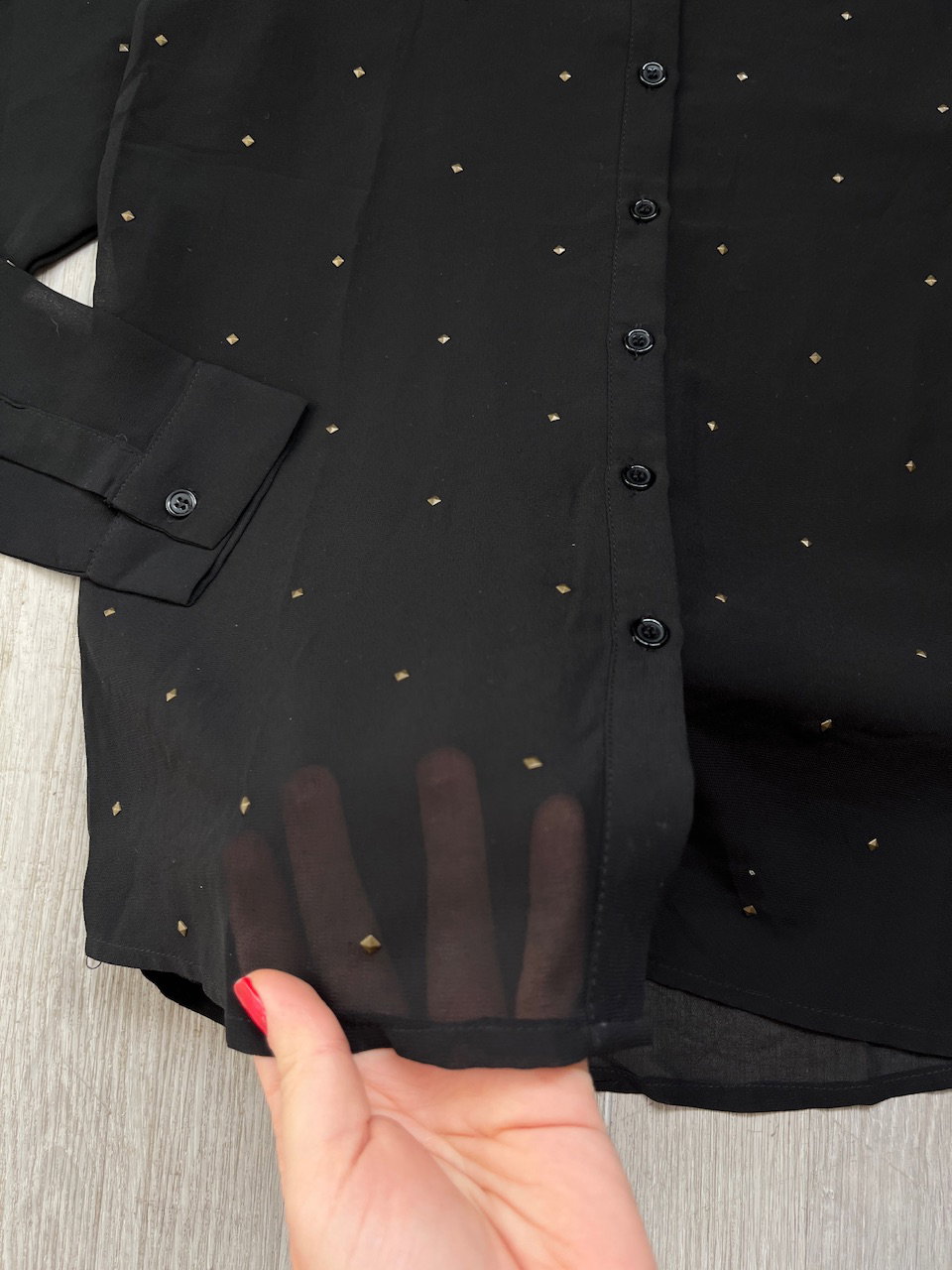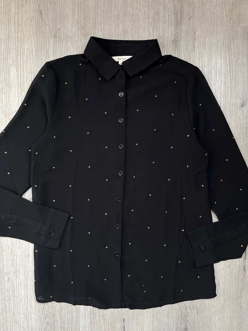 camisa de gasa con tachas talle s MEDIDAS (lado a lado) 36cm hmbr a hmbr 46cm ax a ax 64cm largo 62cm largo de manga