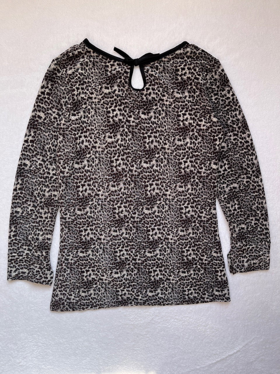 blusa plisada con estampa animal print. hermoso corte. se ata en el cuello con un moño. talle s MEDIDAS (lado a lado) 42cm hmbr a hmbr 48cm ax a ax 55cm largo de manga 68cm largo de manga