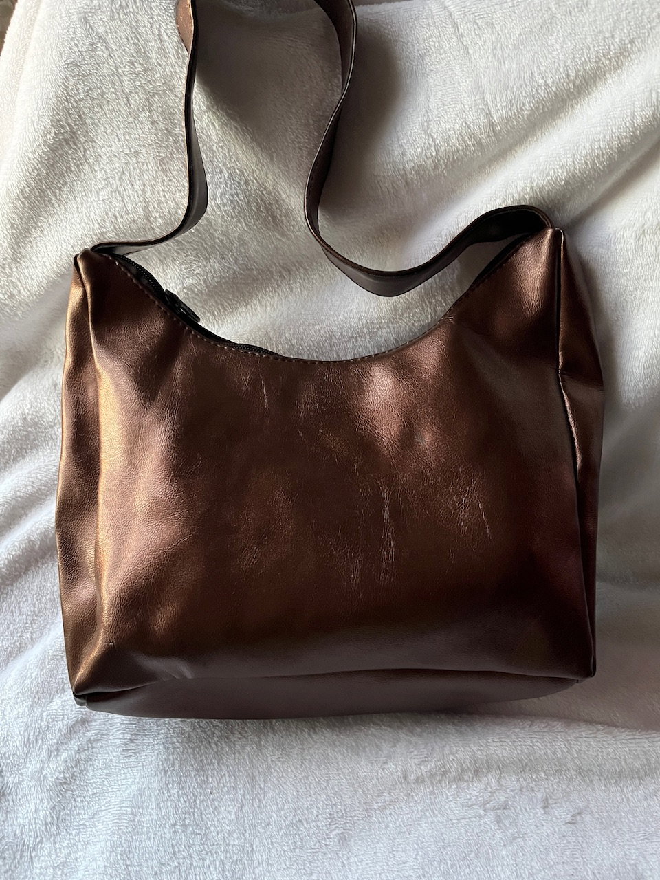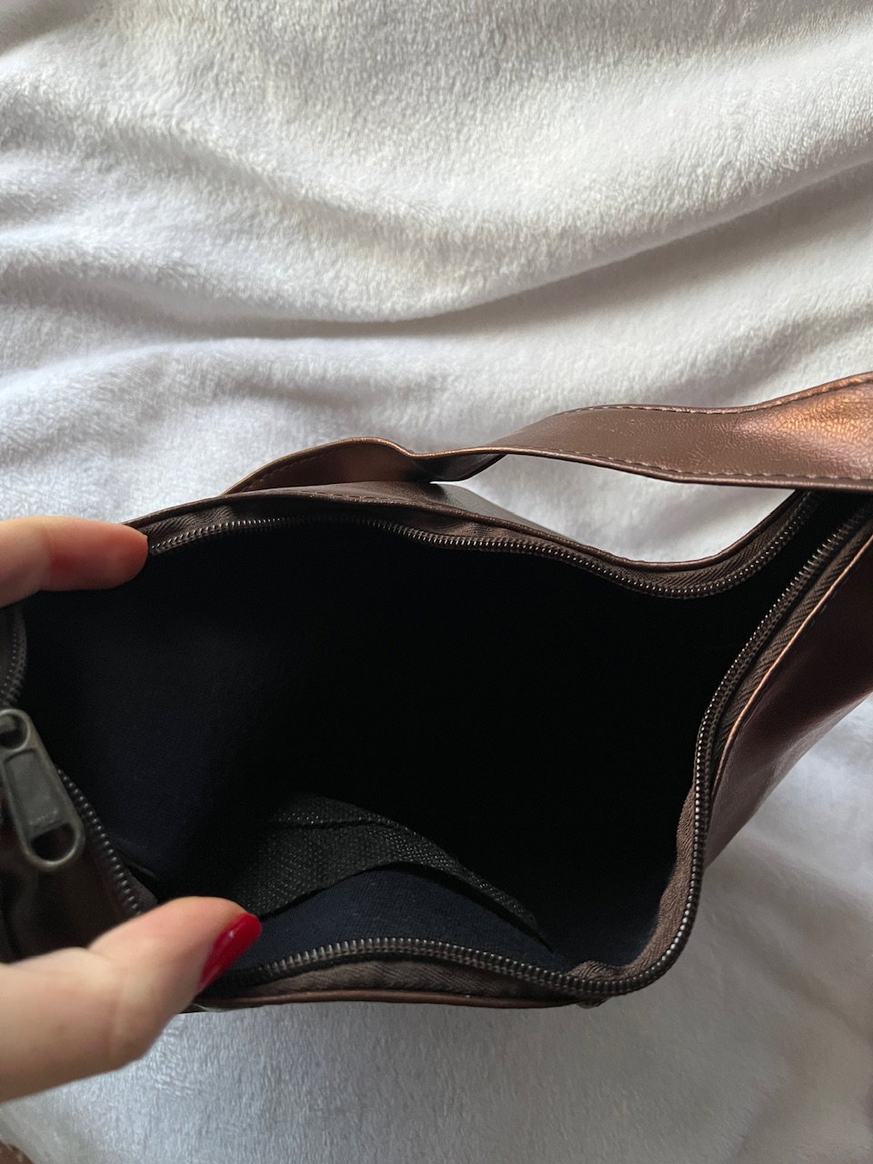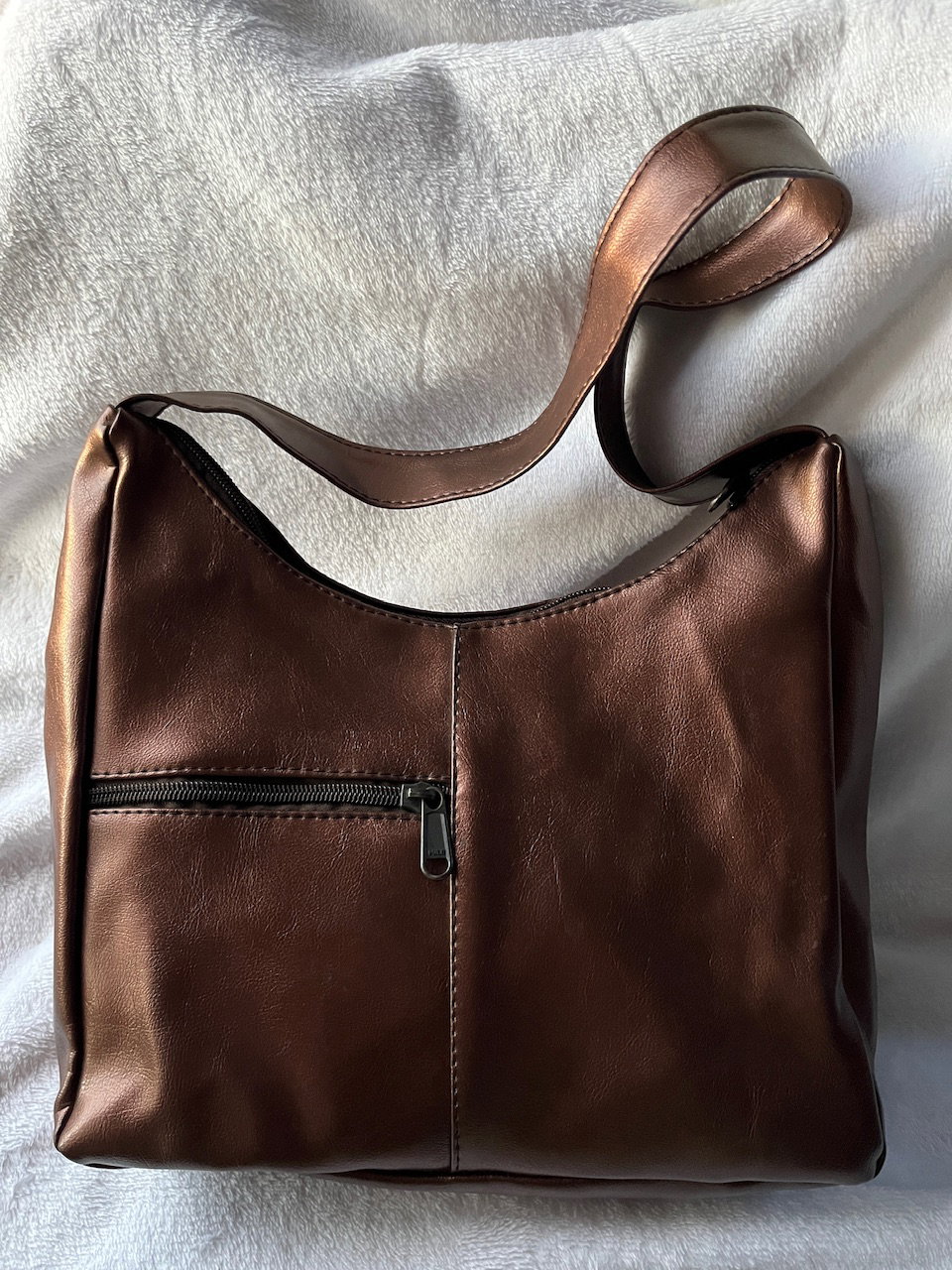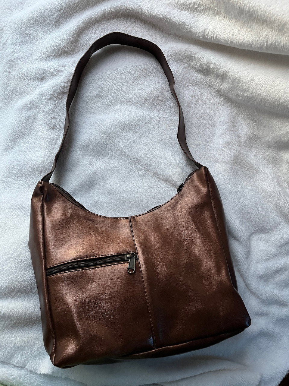 hermosa cartera color metalizado con cierre y bolsillo delantero e interno