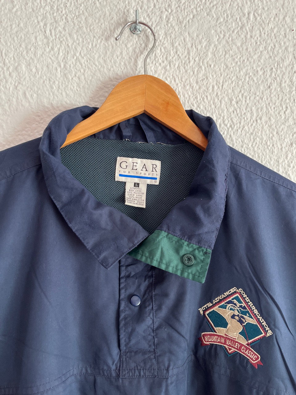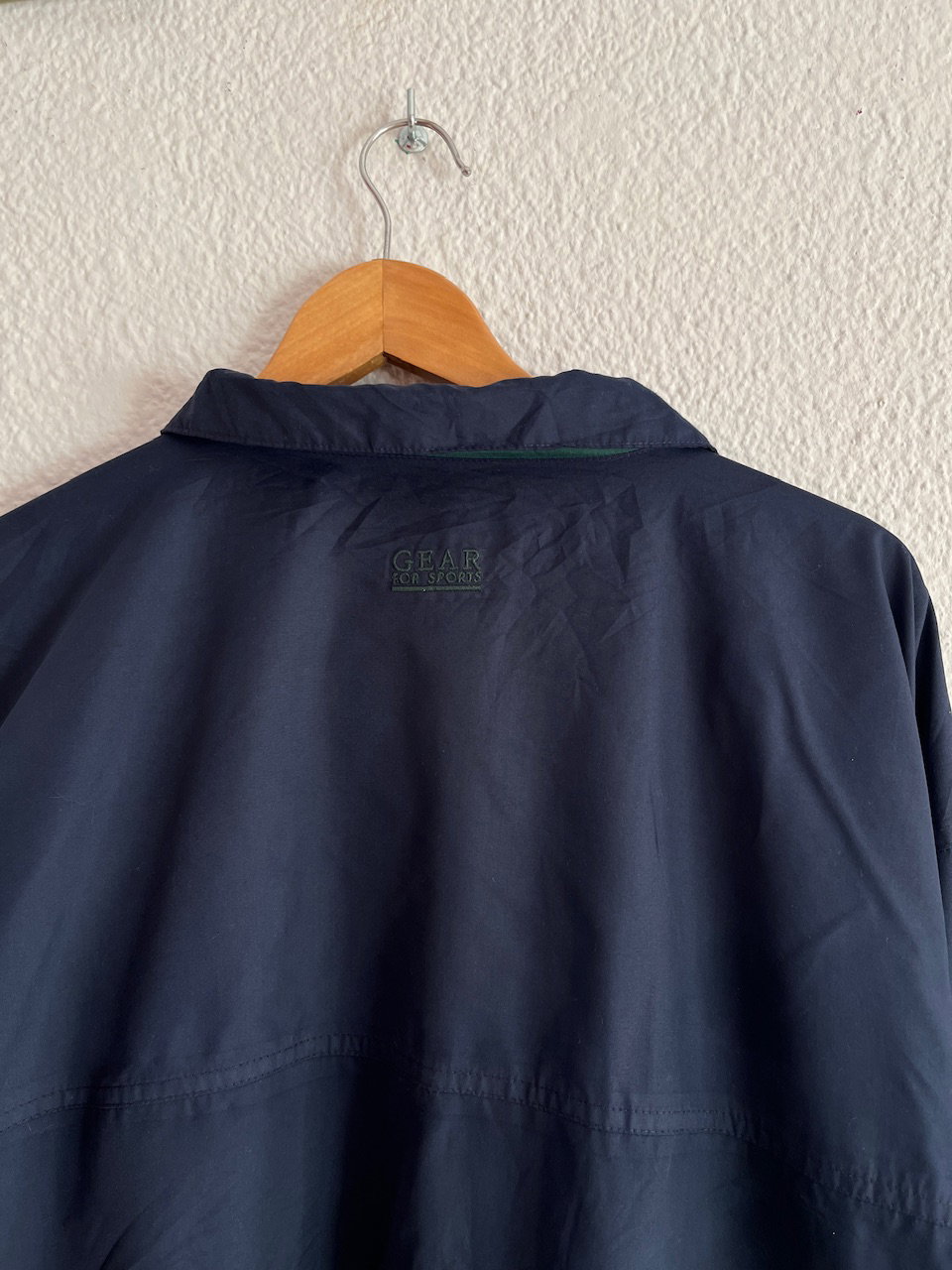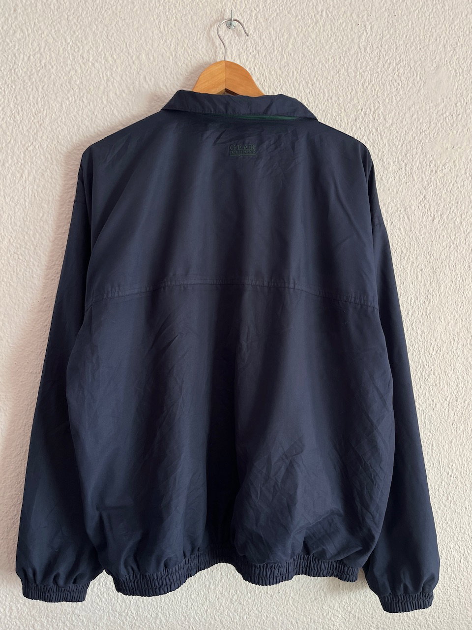 buzo rompevientos con bordado delantero, cuello abotonado y botones delanteros, elastico en la cintura. talle L aprox. vintage de los 90s, nuevo de deposito MEDIDAS (lado a lado) 64cm hmbr a hmbr 67cm ax a ax 63cm lrgo de manga 70cm largo