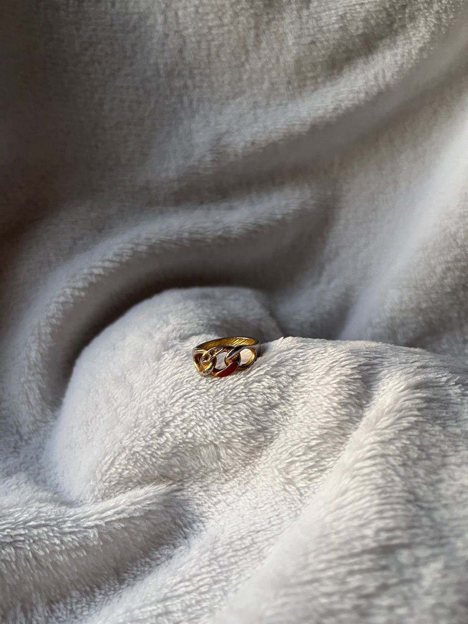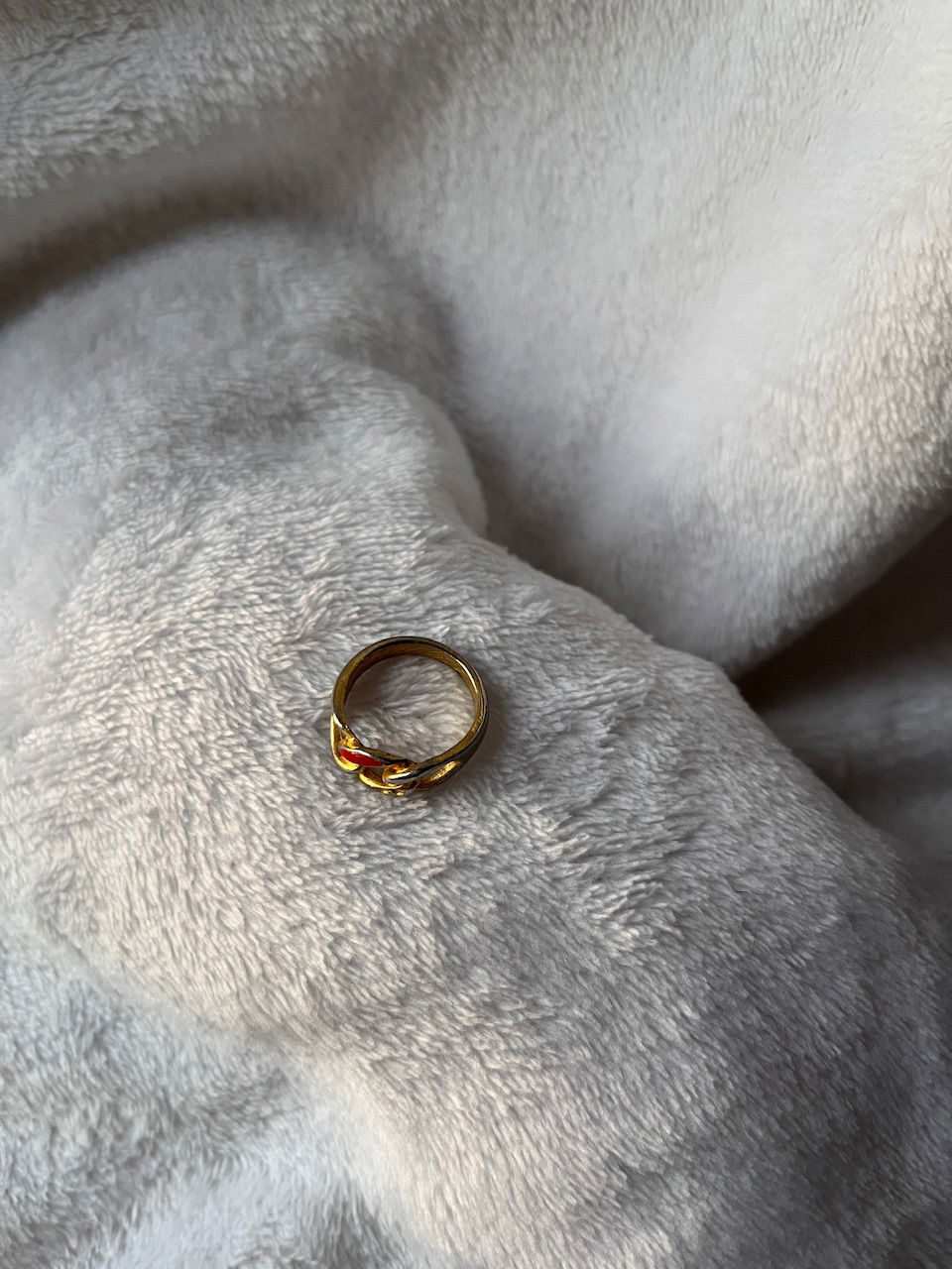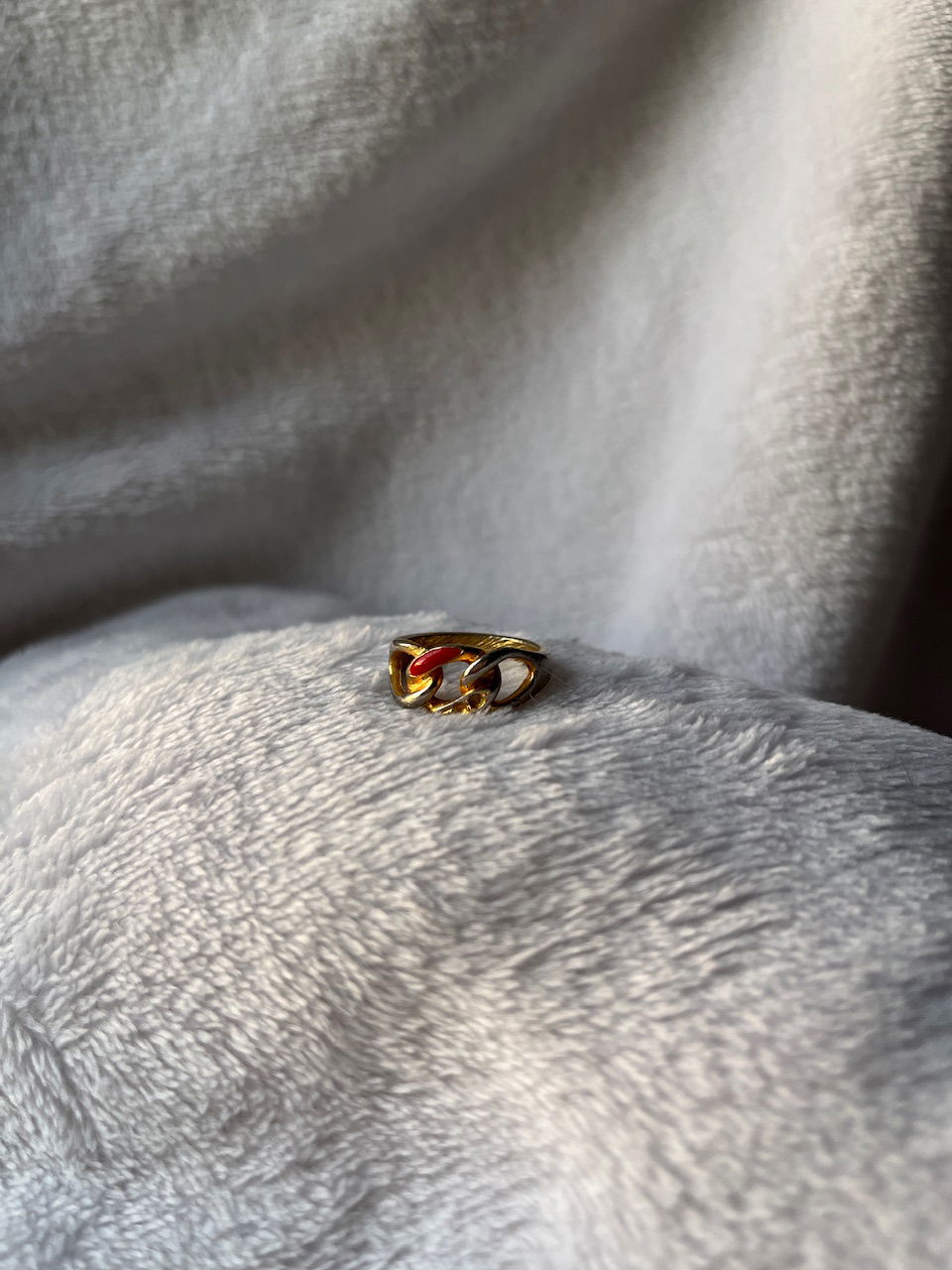 hermoso anillo tipo nudo en color dorado y rojo MEDIDAS