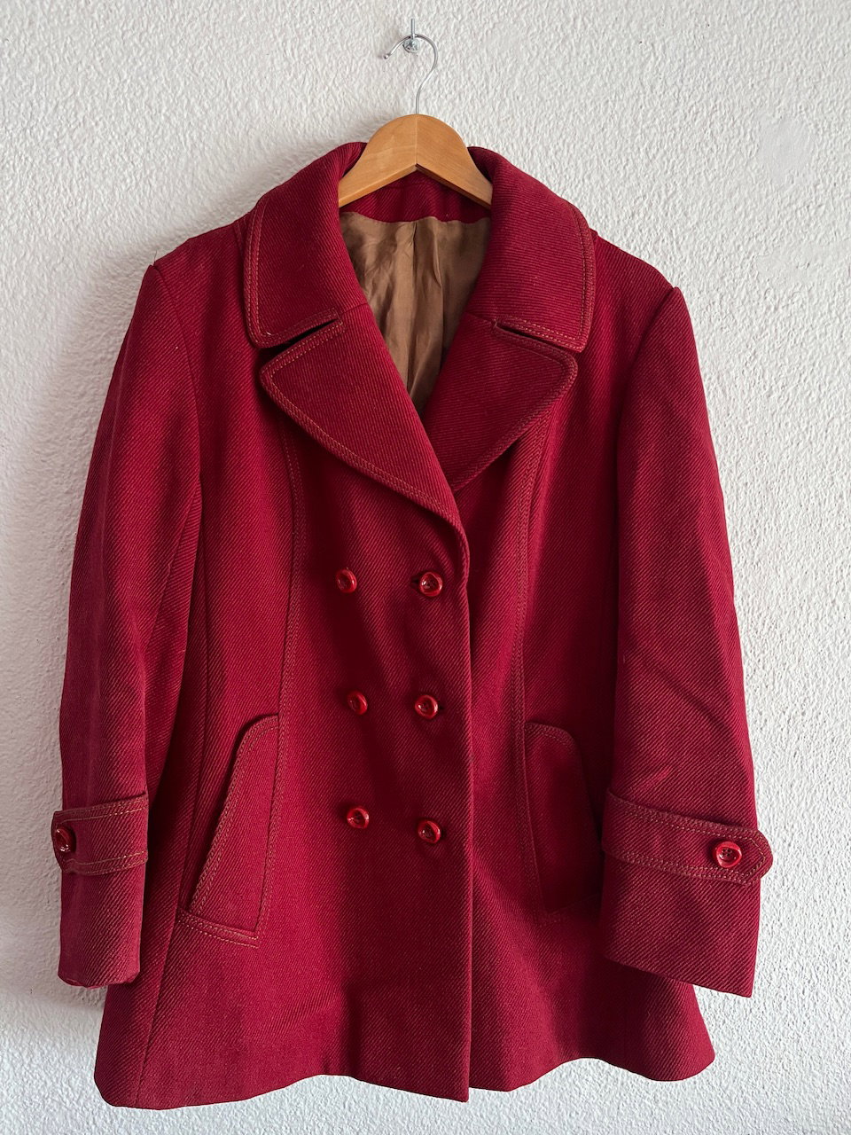 tapado de lana, super abrigado, es pesadito. cuenta con bolsillos. talle m aprox. buen estado general MEDIDAS (lado alado) 45cm hmbr a hmbr - 55cm ax a ax - 77cm largo - 56cm largo de mangas - 26cm sisa