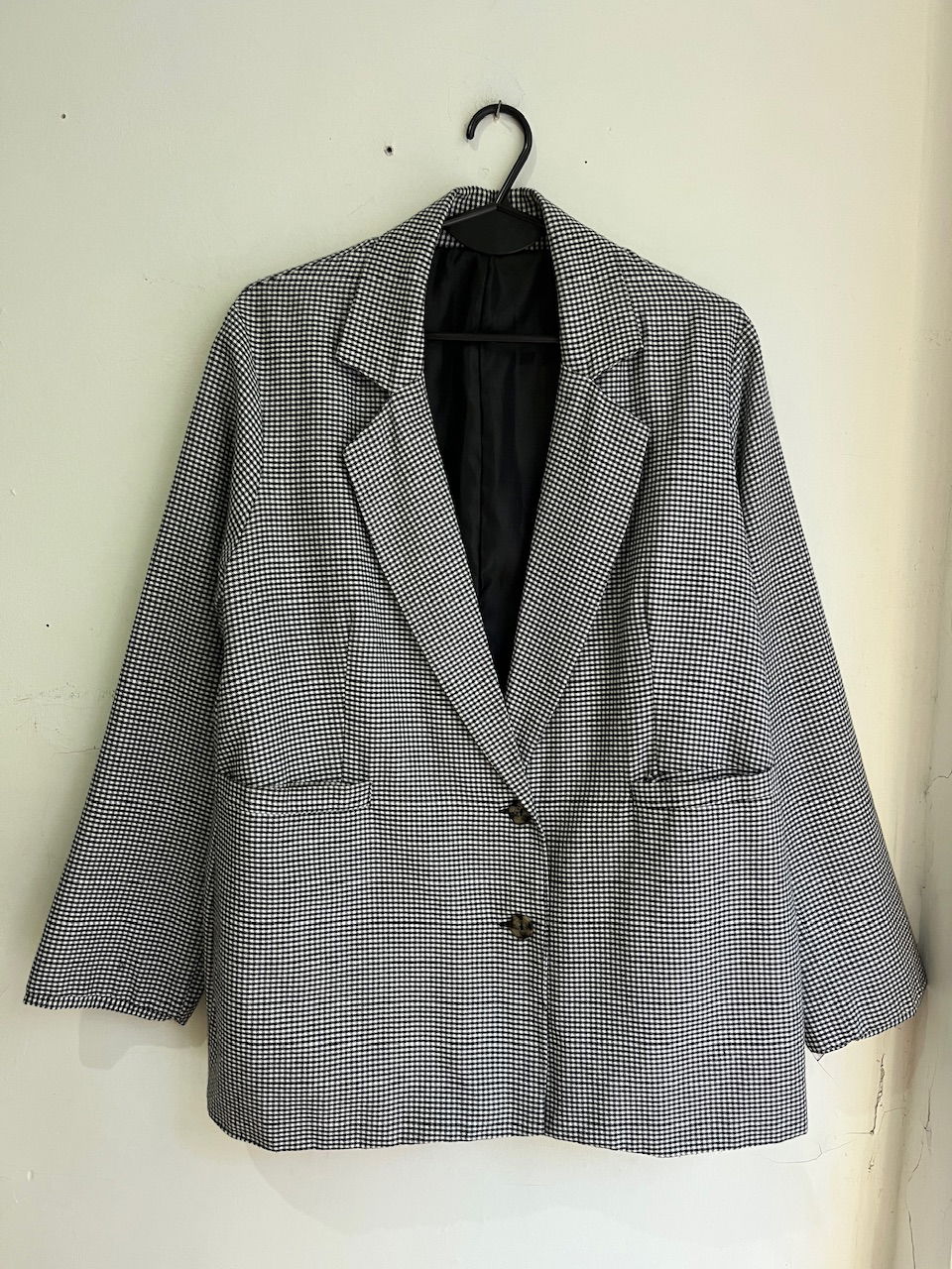 blazer pied de poule muy 90s, es livianito tipo lanilla. talle L grande MEDIDAS (lado a lado) 42cm hmbr a hmbr - 52cm ax a ax - 67cm largo total - 58cm largo de mangas - 25cm sisa