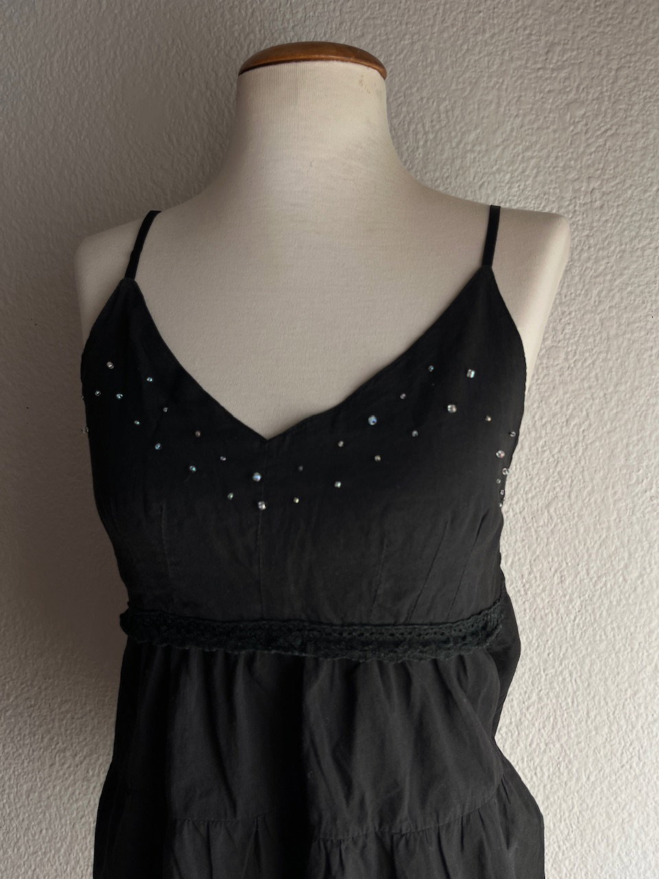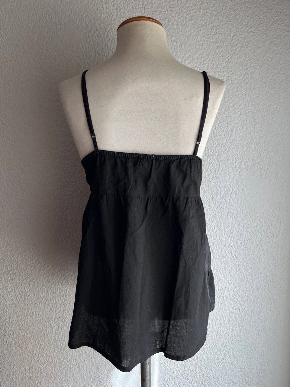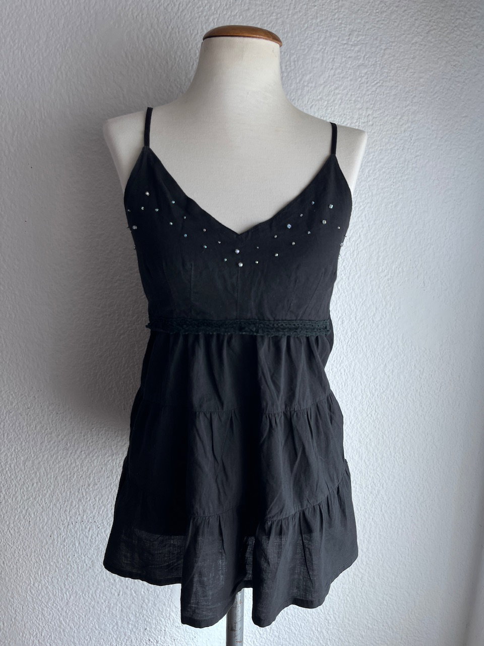 top musculosa con mostacillas bordadas, guarda en el bajo busto y bolados