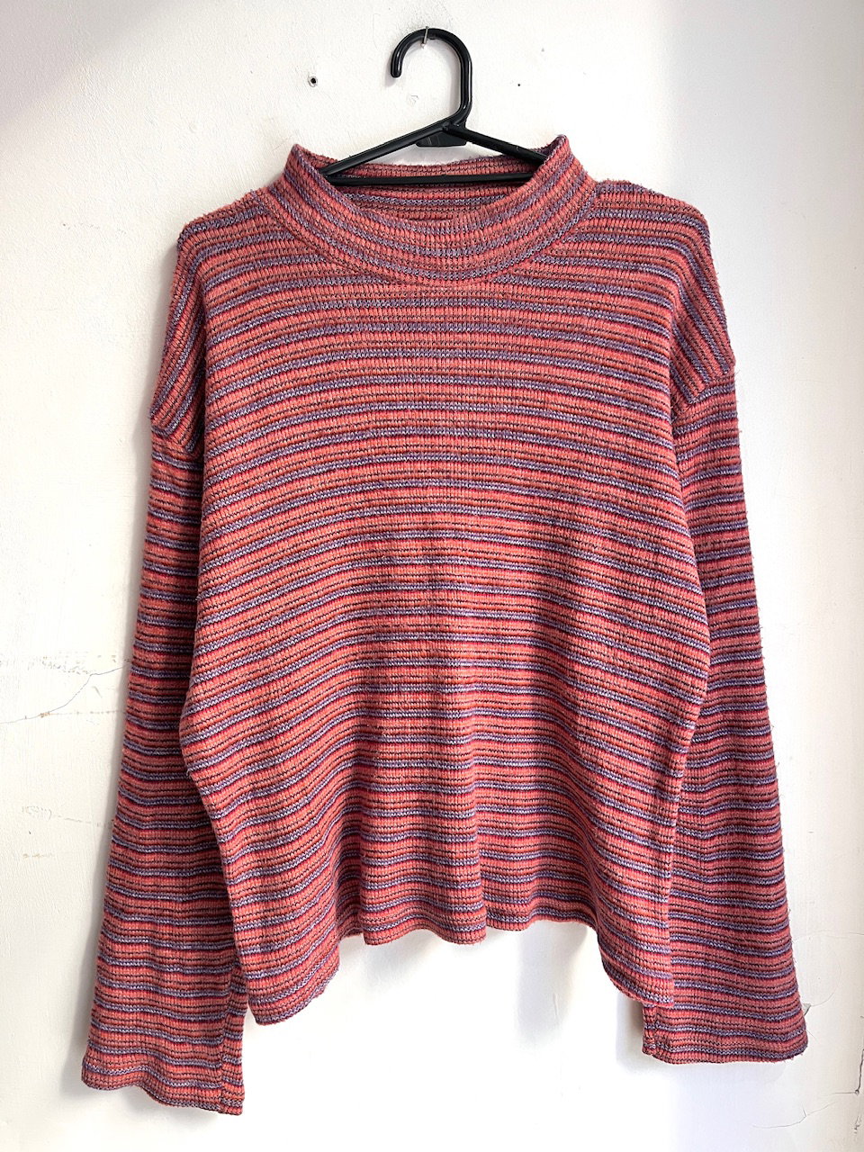 hermoso sueter media polera. de lanilla, es livianito. corte boxy fit . talle L