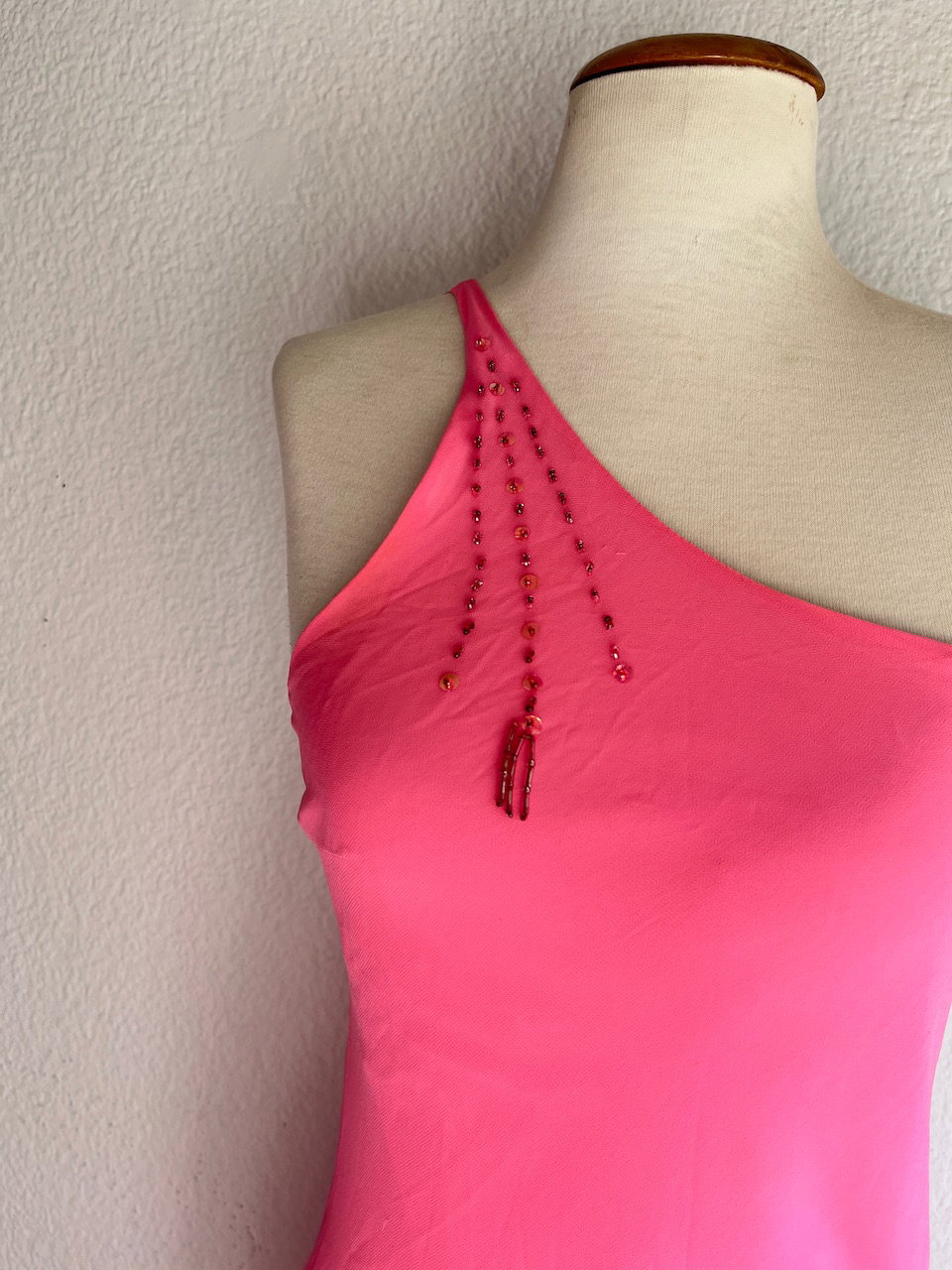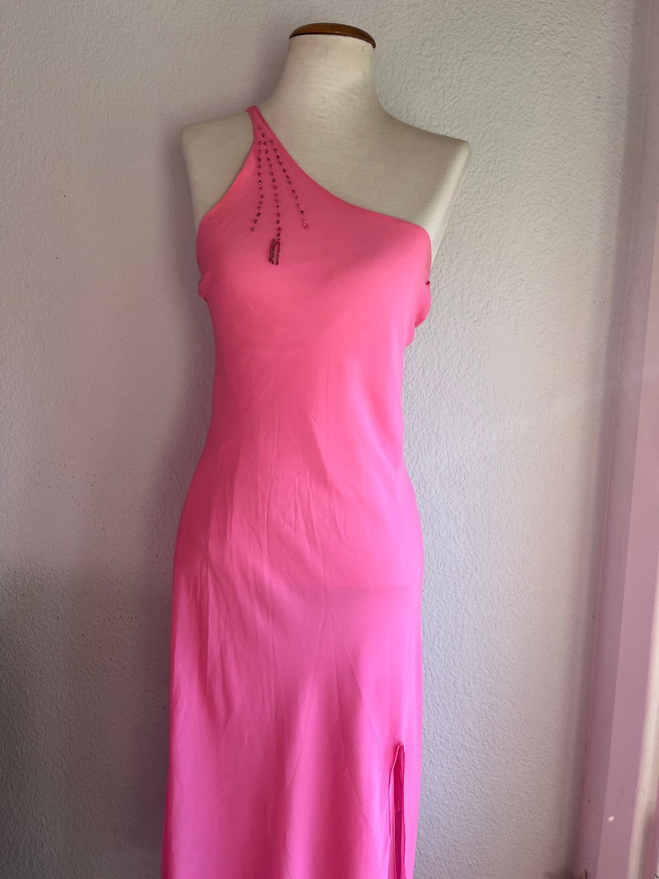 vestido de fiesta original de los 00s con un solo hombro y bordados. falda vaporosa e irregular. talle s. de gasa. impecable estado MEDIDAS (lado a lado) 36cm a 43cm ac a ax- 28cm sisa- 150cm largo