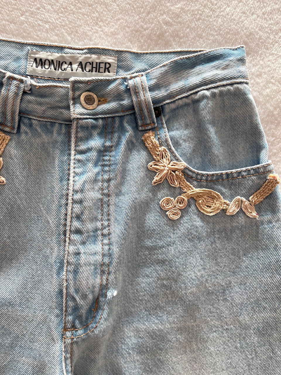 mom jean original de los 80s. en muy buen estado de conservacion a pesar de los años, ver unico detalle en fotos. es super tiro alto, con aplique original en bolsillos y 100% algodon talle 36 aprox MEDIDAS (lado a lado) 34cm cintura- 45cm cadera- 33cm largo- 102cm largo