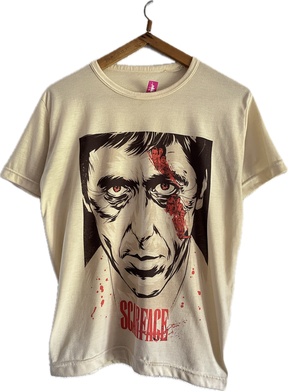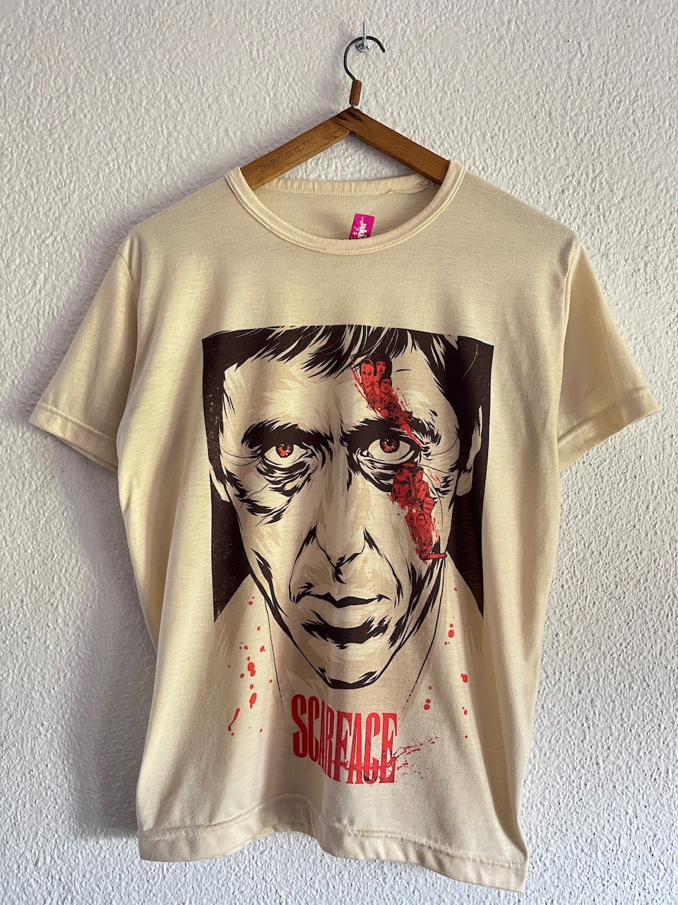 remera de scarface con full estampa. buen estado general pero usada. talle m amplio o L chico aprox MEDIDAS (lado alado) 48cm hmbr a hmbr- 60cm ax a ax- 68cm largo