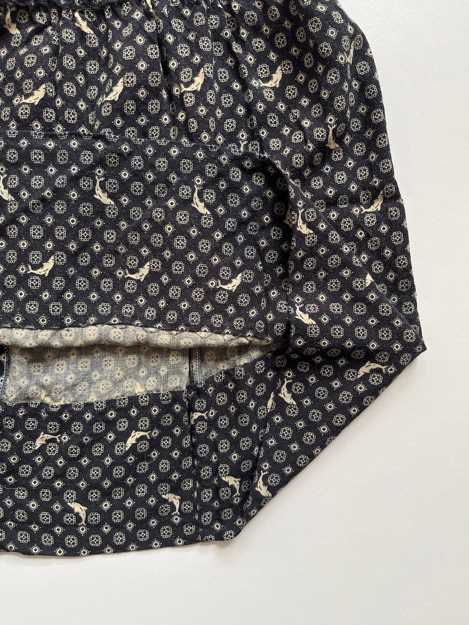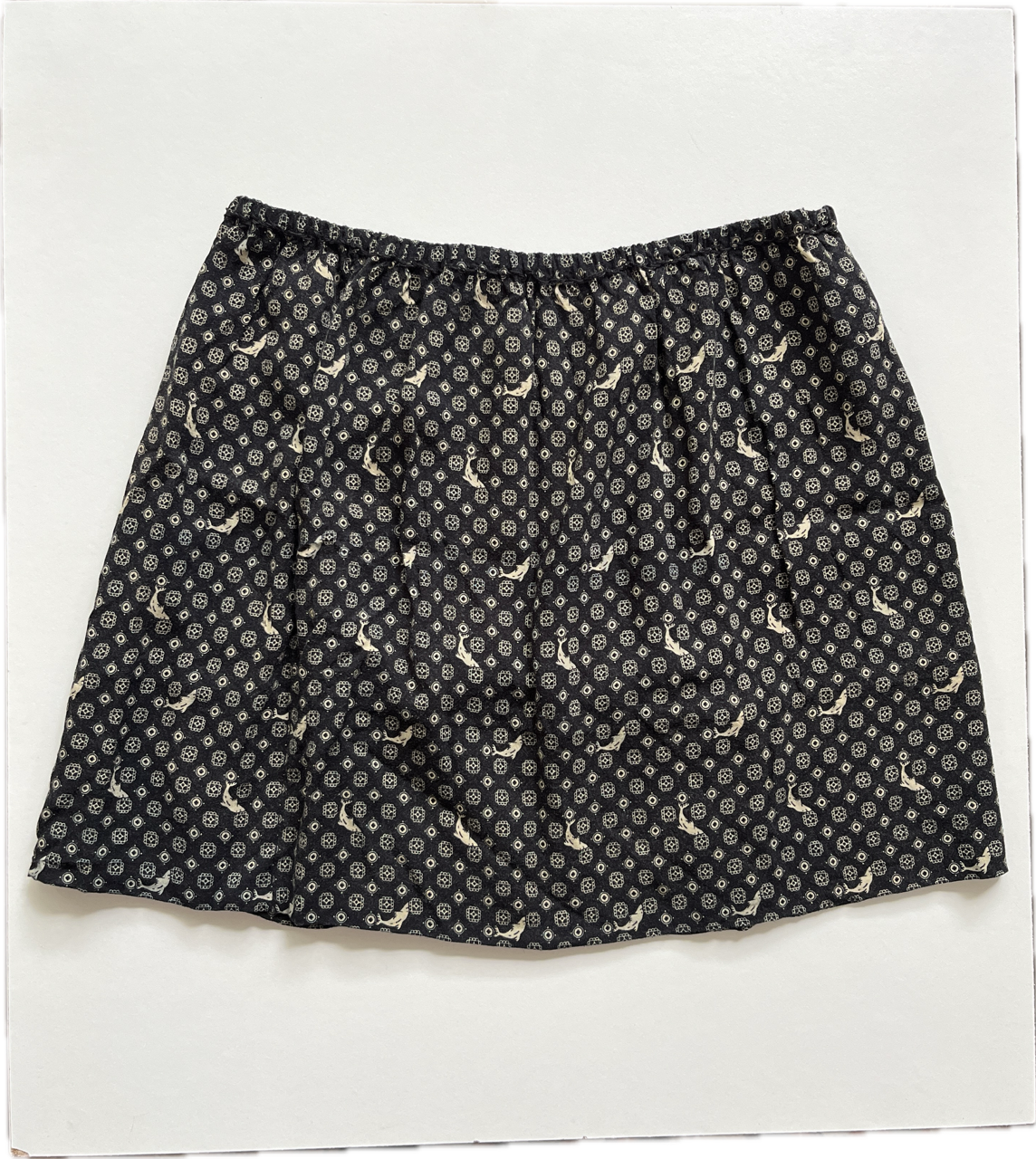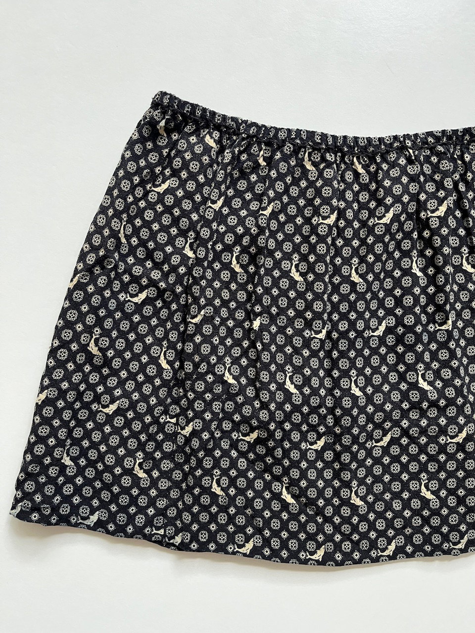 mini original de fines de los 90s con estampado de delfines y arabescos. es de algodón tipo fibrana, súper livianita. tiene un ruedo bastante ancho x lo que se podría reformar para adaptar el largo a gusto. talle 36 a 42 aprox. MEDIDAS (lado a lado) 33cm a 45cm de cintura- 37cm largo- cadera hasta 45cm
