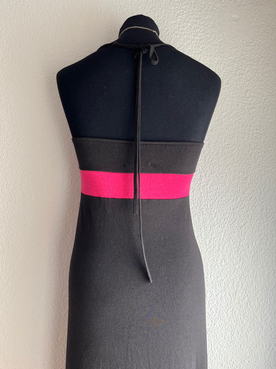 vestido super largo, de algodon, con escote halter, espalda descubierta. hermoso corte. talle m aprox