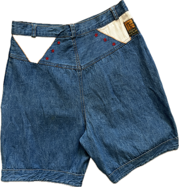 bermuda de jean pierre balmain original. vintage de los 90s. tiene pinzas tipo sastrero, bolsillos y pasa cinto 100% algodón. impecable estado. ver único detalle atrás en foto. talle 44/6 aprox. MEDIDAS (lado a lado) 41cm cintura- 58cm cadera- 40cm tiro- 55cm largo