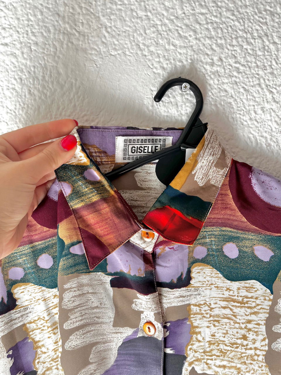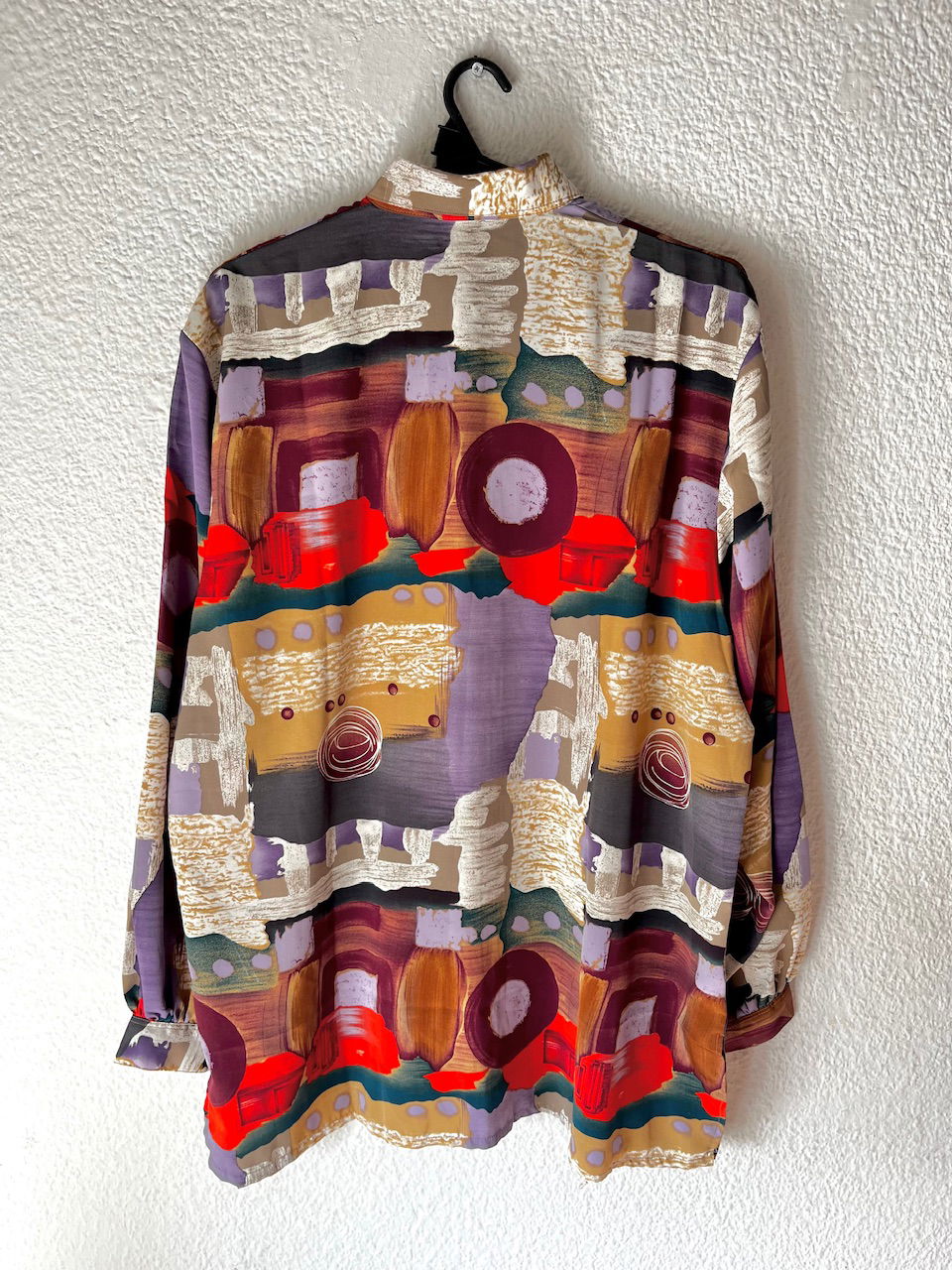 camisa original de los 80s de seda fria, full estampada, livianita y fresca. talle L aprox