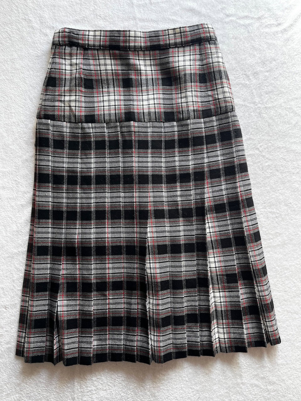falda larga tableada. es tiro alto y bien larga. cuenta con cierre invisible y botones. abarca varios talles hasta un 44 aprox. se encuentra en excelente estado