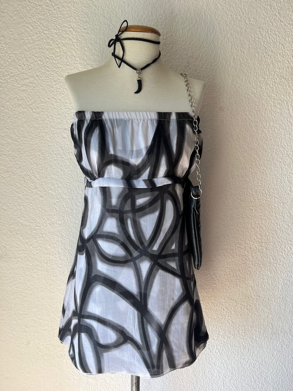 top larguito o mini vestido strapless original de los 00s de la marca Kill, es de gasa y está forrado cuenta con cierre lateral para acceder a la prenda y se puede ajustar en la cintura