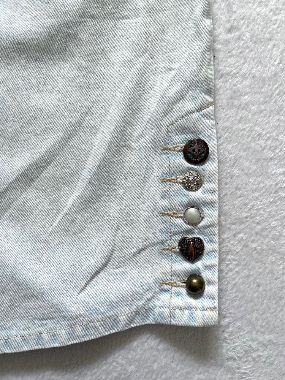 cuenta con botones vintage a juego en cada lateral. es tiro alto
