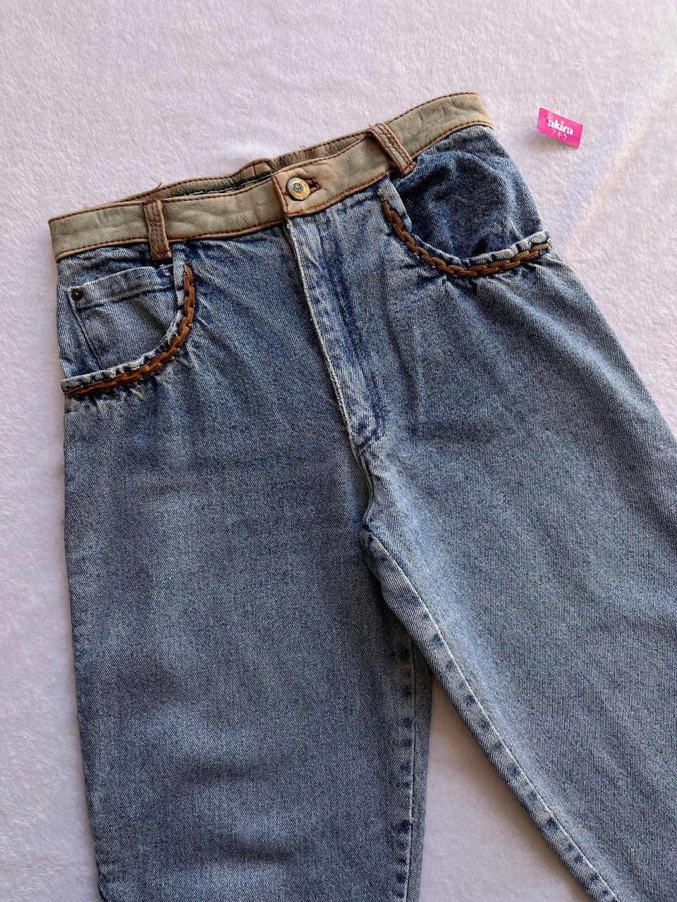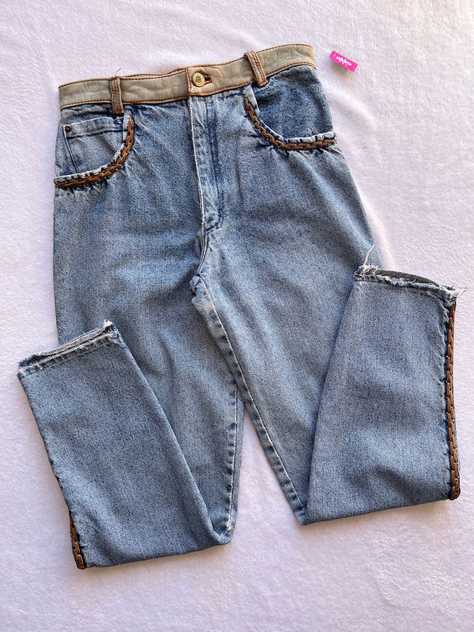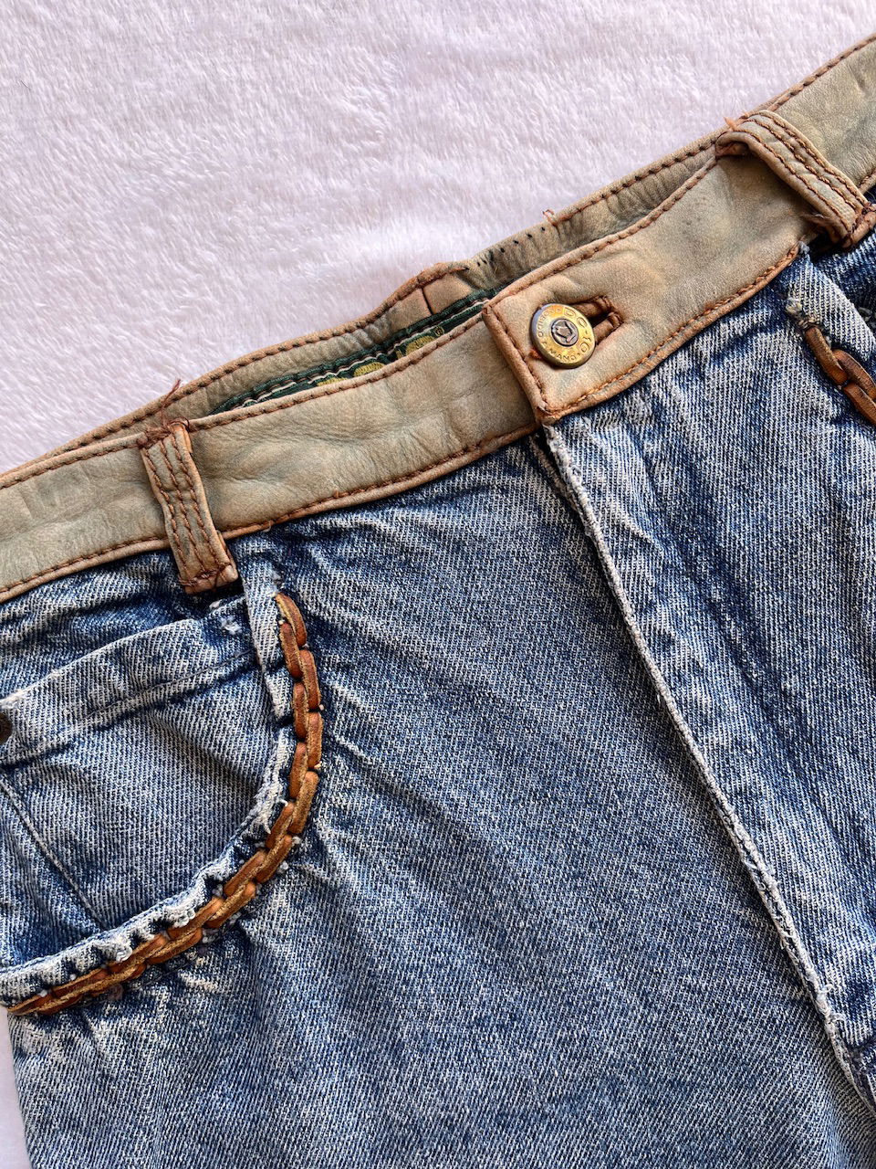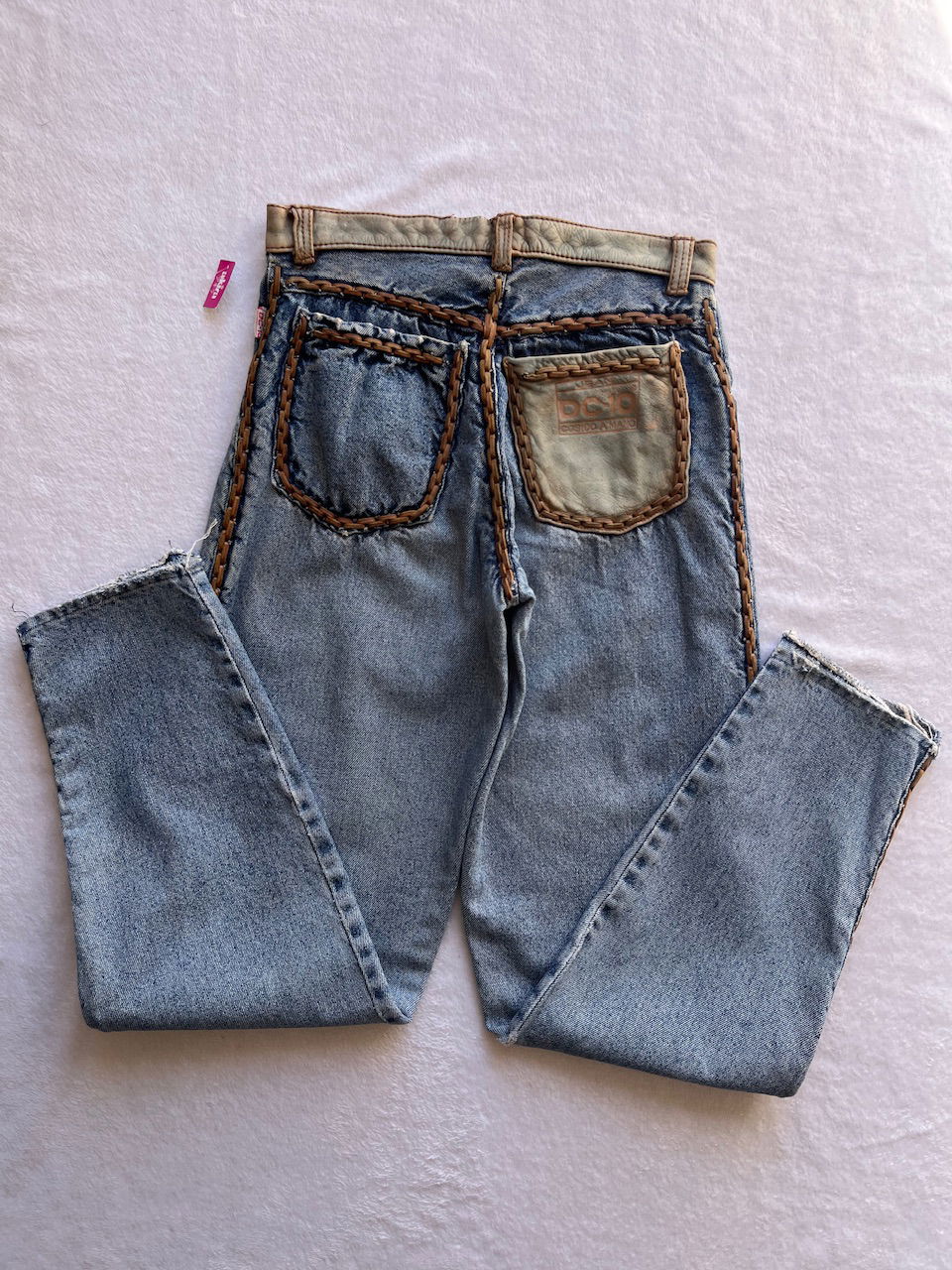 jean con detalles en cuero cosido a mano talle 36 aprox