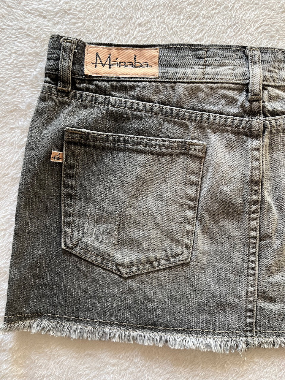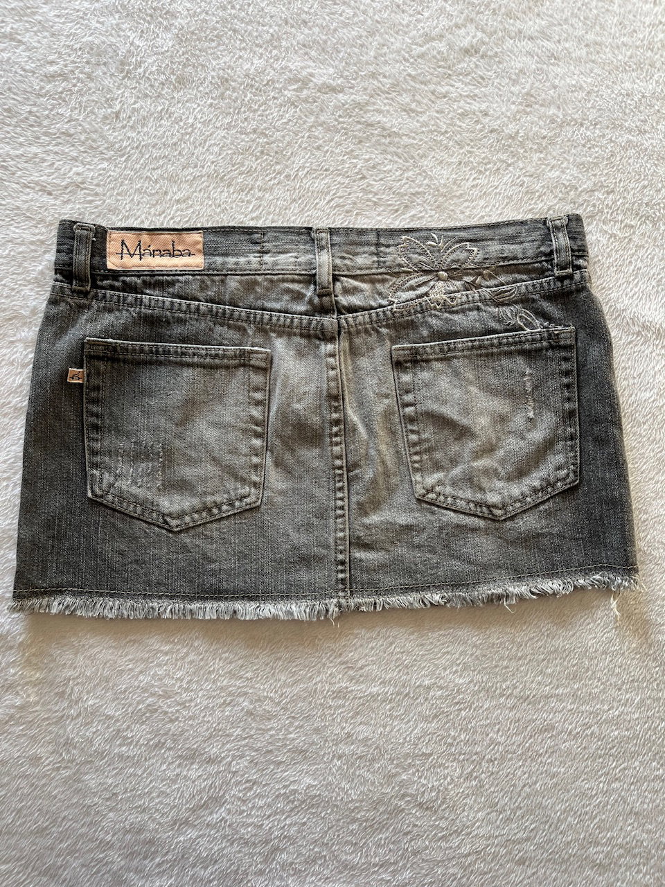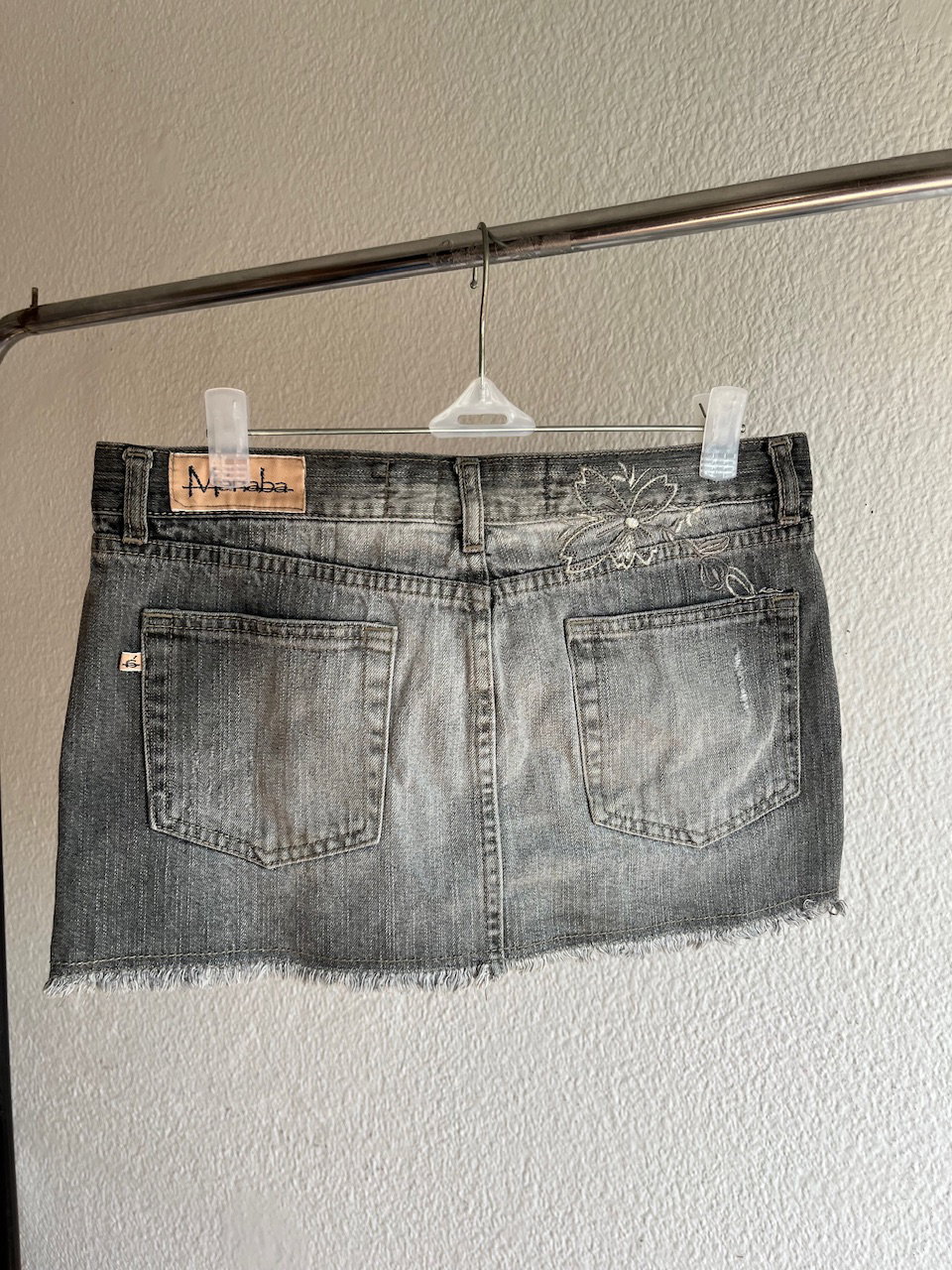 mini de jean original de los 2000s. cuenta con un bordado hermoso en la cintura atrás