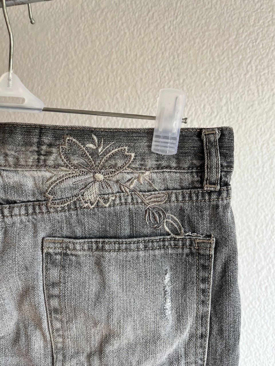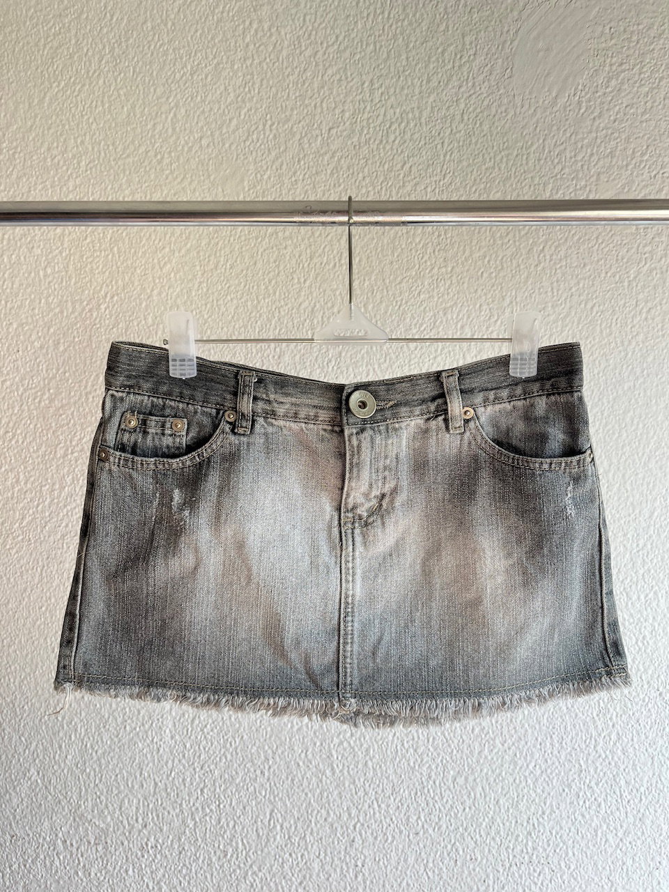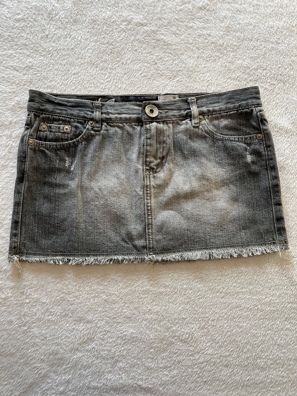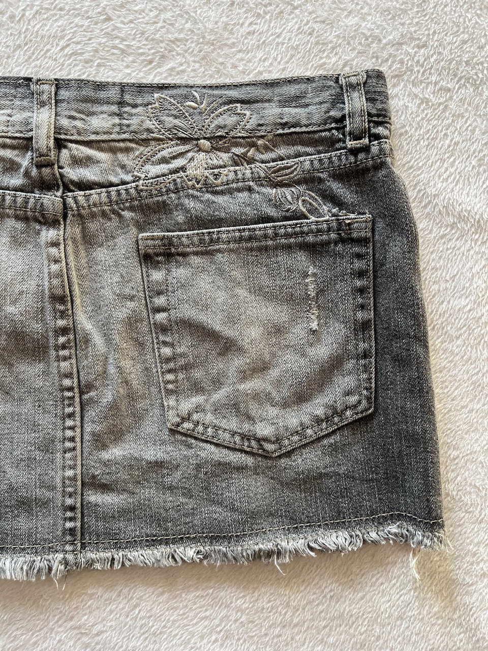 mini de jean original de los 2000s. cuenta con un bordado hermoso en la cintura atrás