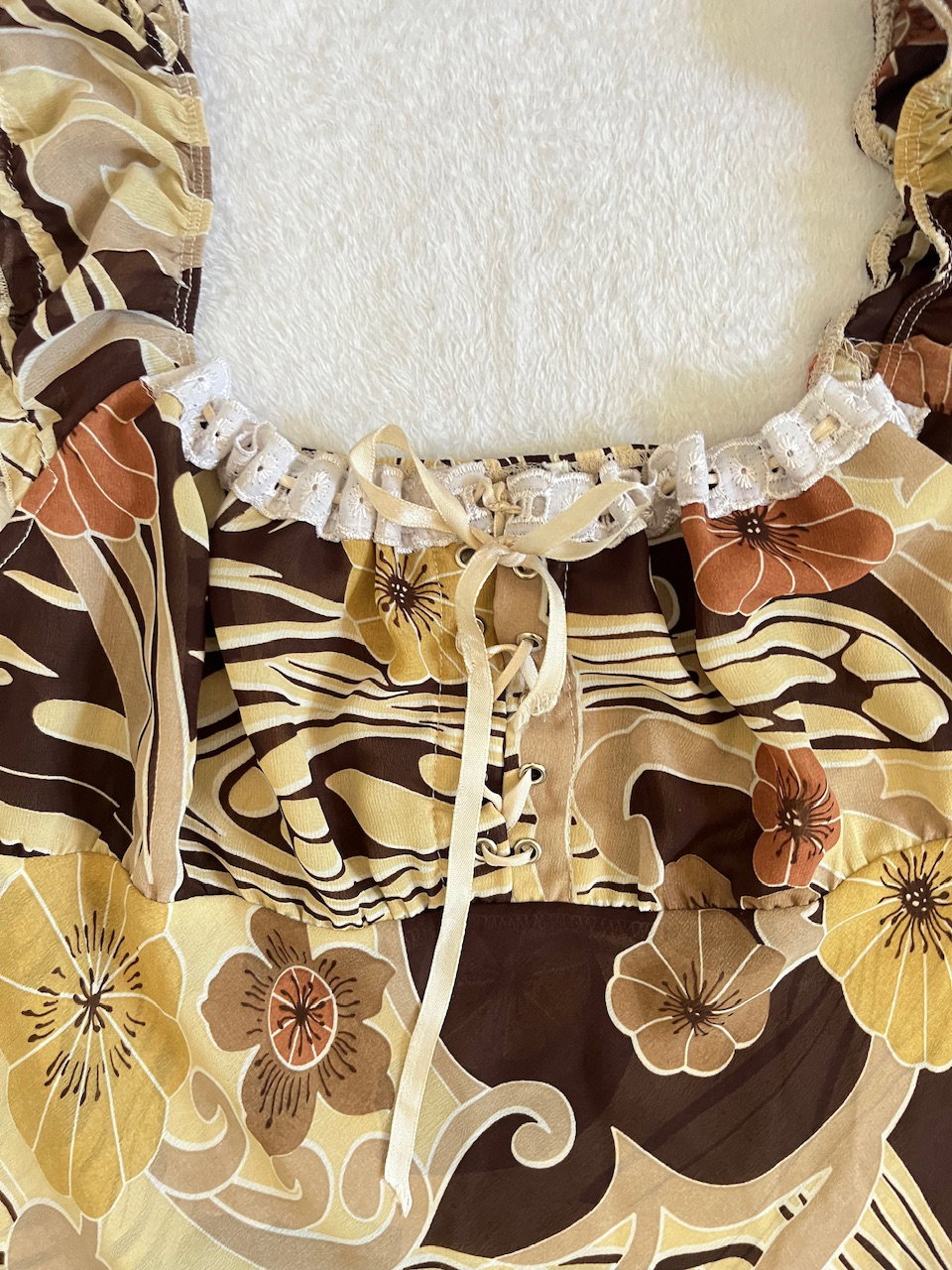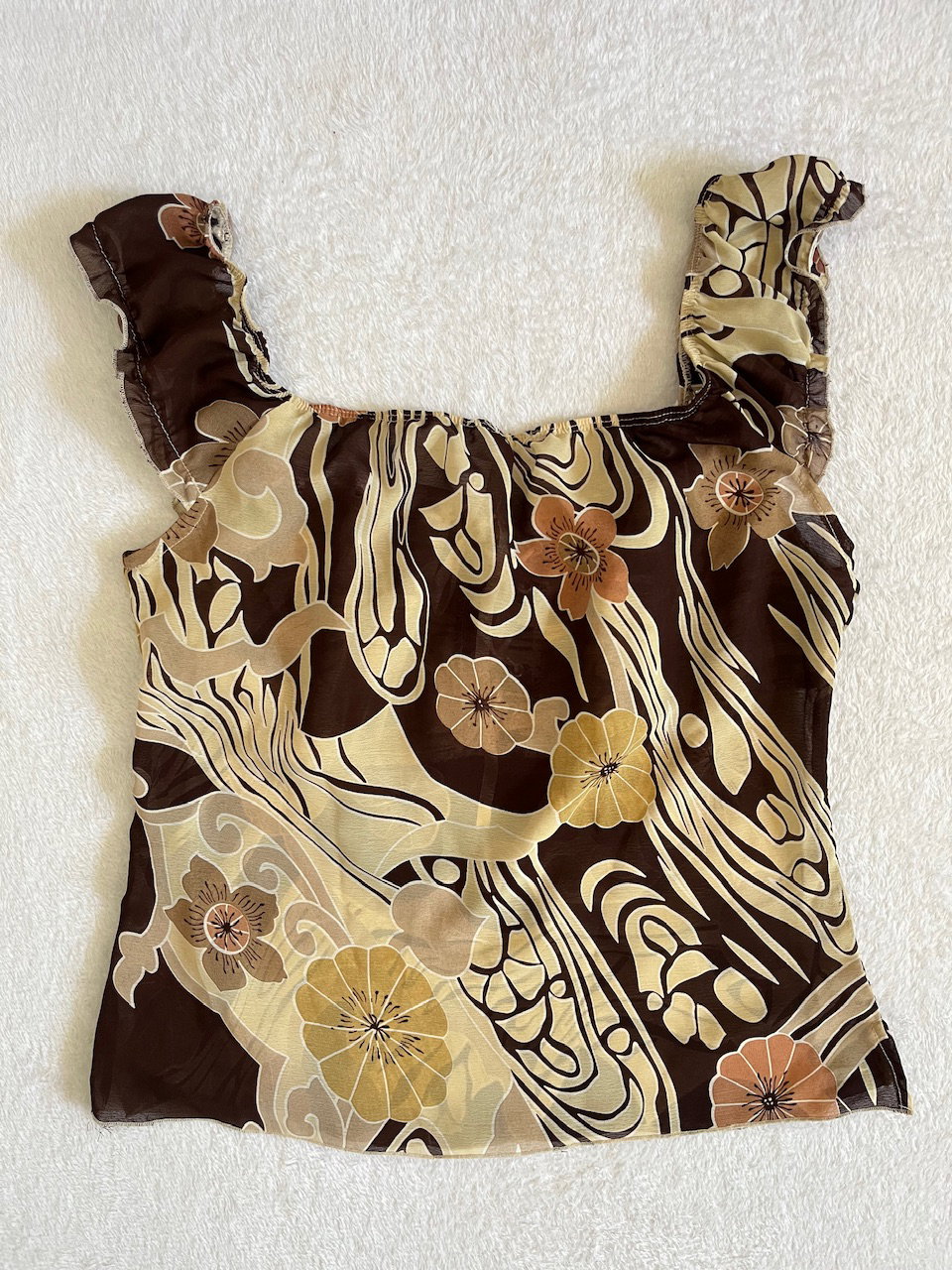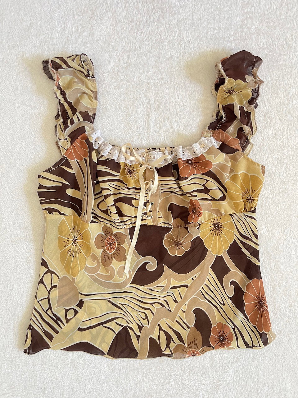 topcito de flores hawaianas original de los 90s es de gasa y en el busto está forradose ajusta con cintitas de raso a juego talle m