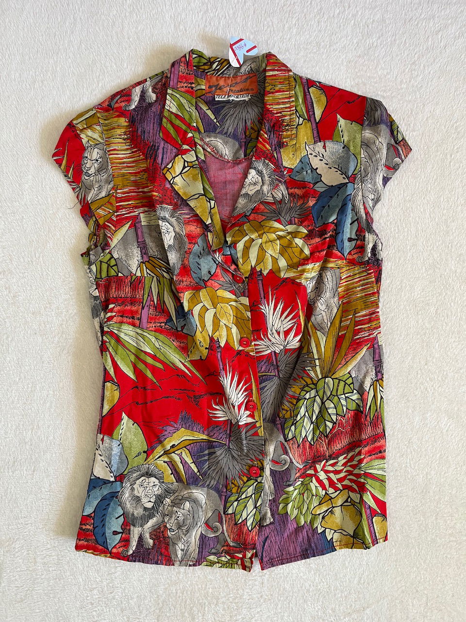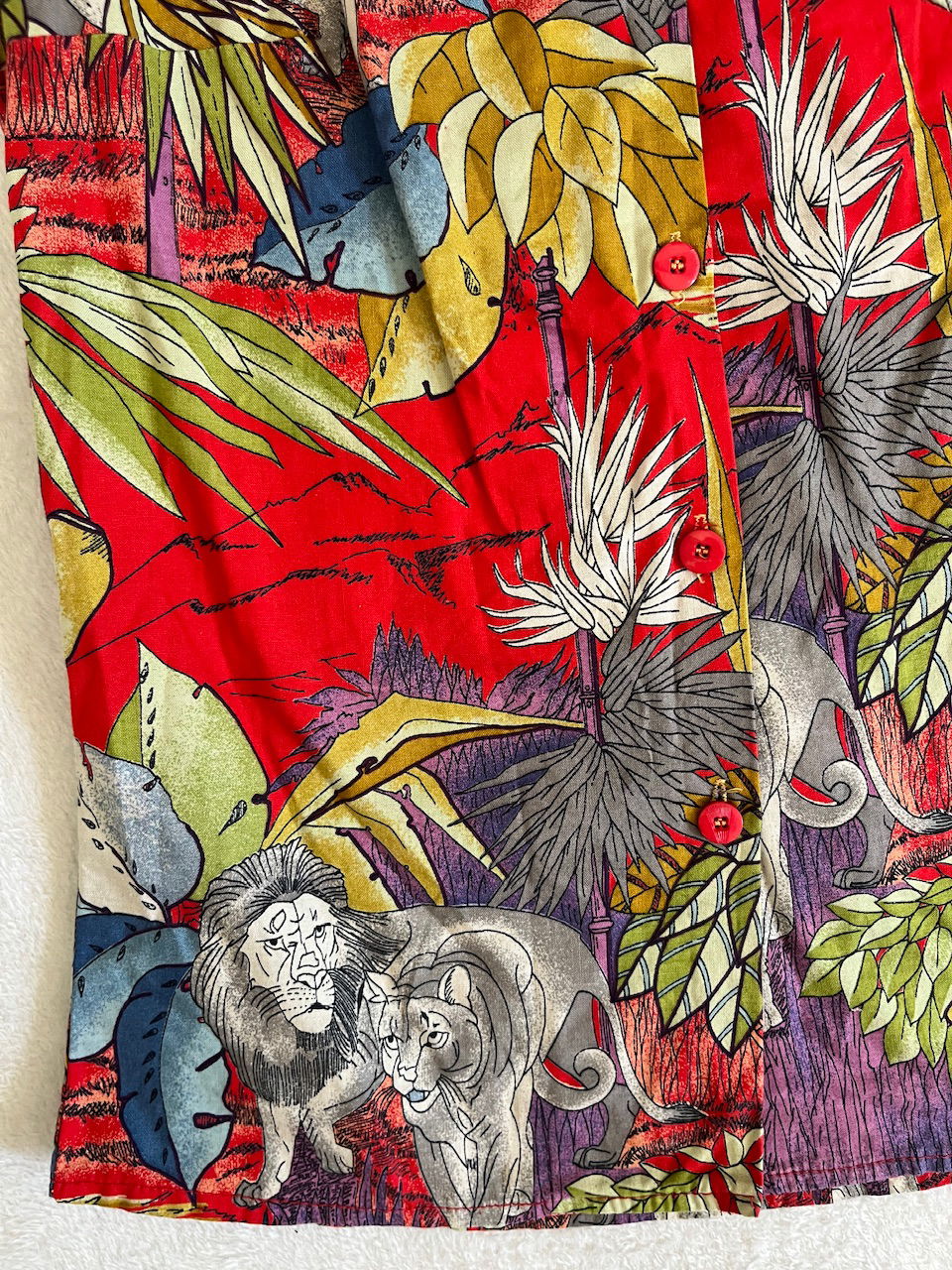 camisa con estampa de leones y plantas. estilo selvala tela es un sueño. es de algodón original de los 80s - sin hombreras como nueva talle s