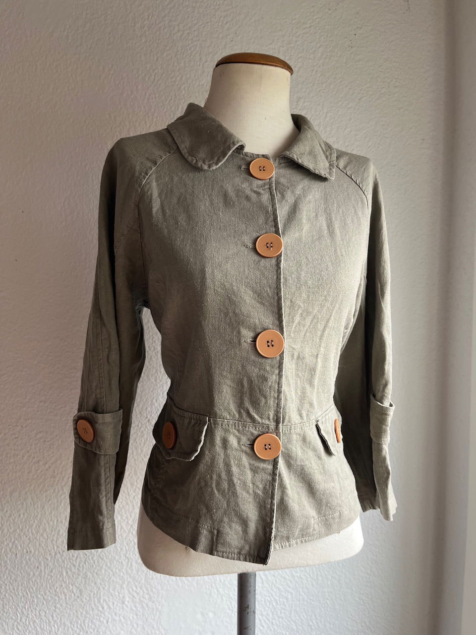 hermoso blazer o bolero original de los 00s con botones en color ladrillo, es entallado y manga 3/4talle s la tela es tipo un lino