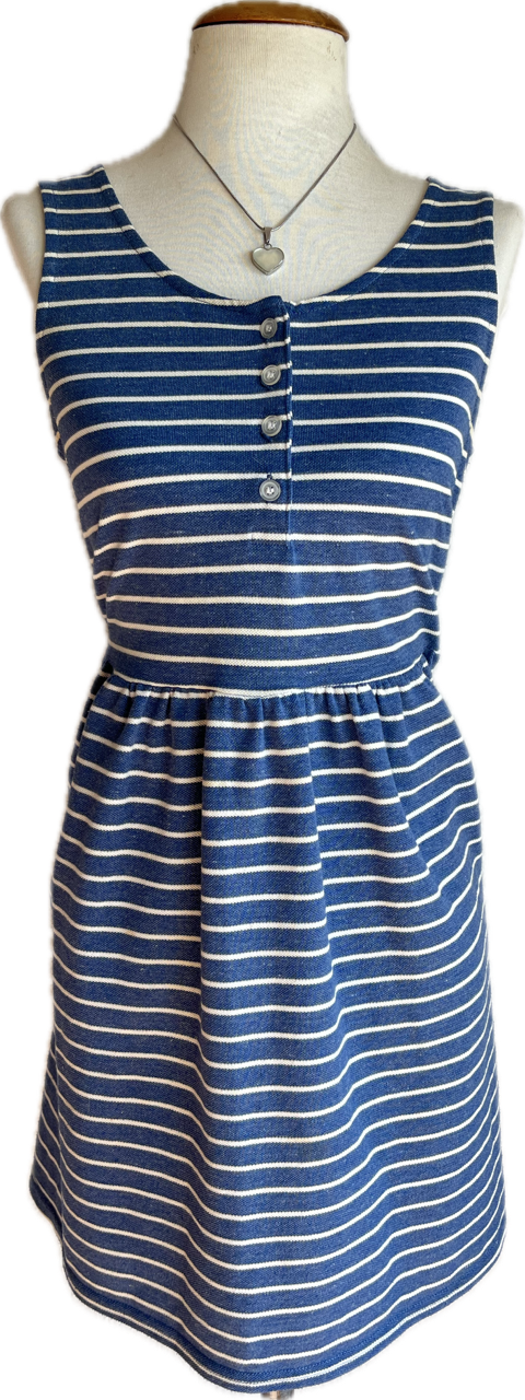 hermoso vestido de algodón. se accede a la prenda con los botones delanteros, marca la cintura y tiene mucho vuelo la falda