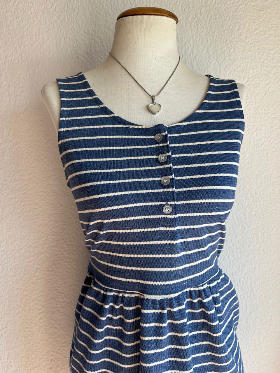 hermoso vestido de algodón. se accede a la prenda con los botones delanteros, marca la cintura y tiene mucho vuelo la falda